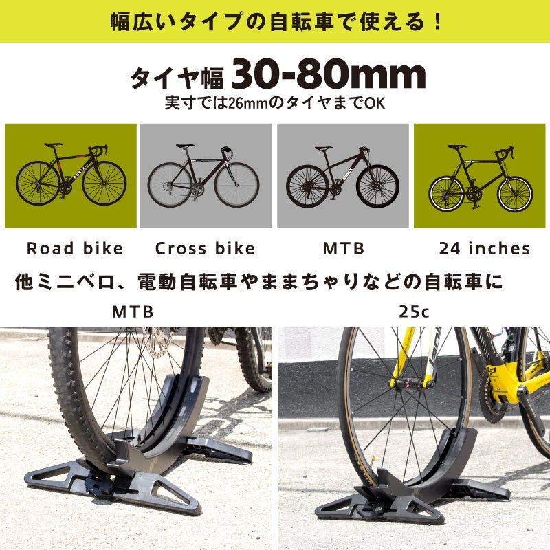 ・タイヤ幅26-80mmまでの自転車で太いタイヤにも対応