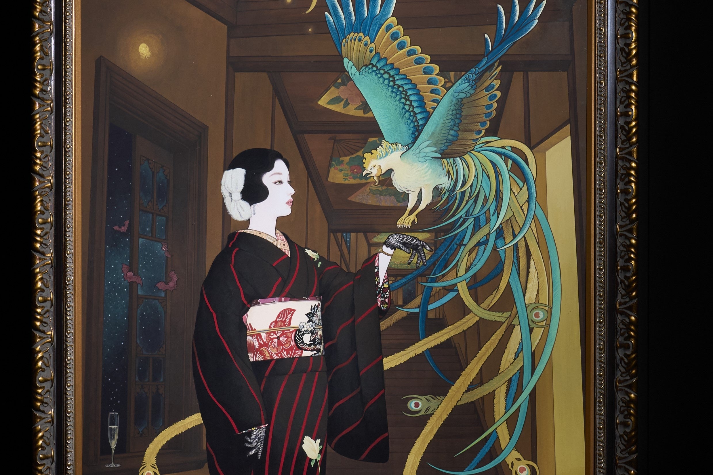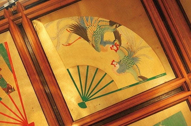 ▼天井から抜け出した鳳凰がモダンガールと戯れる。(静水の間)
