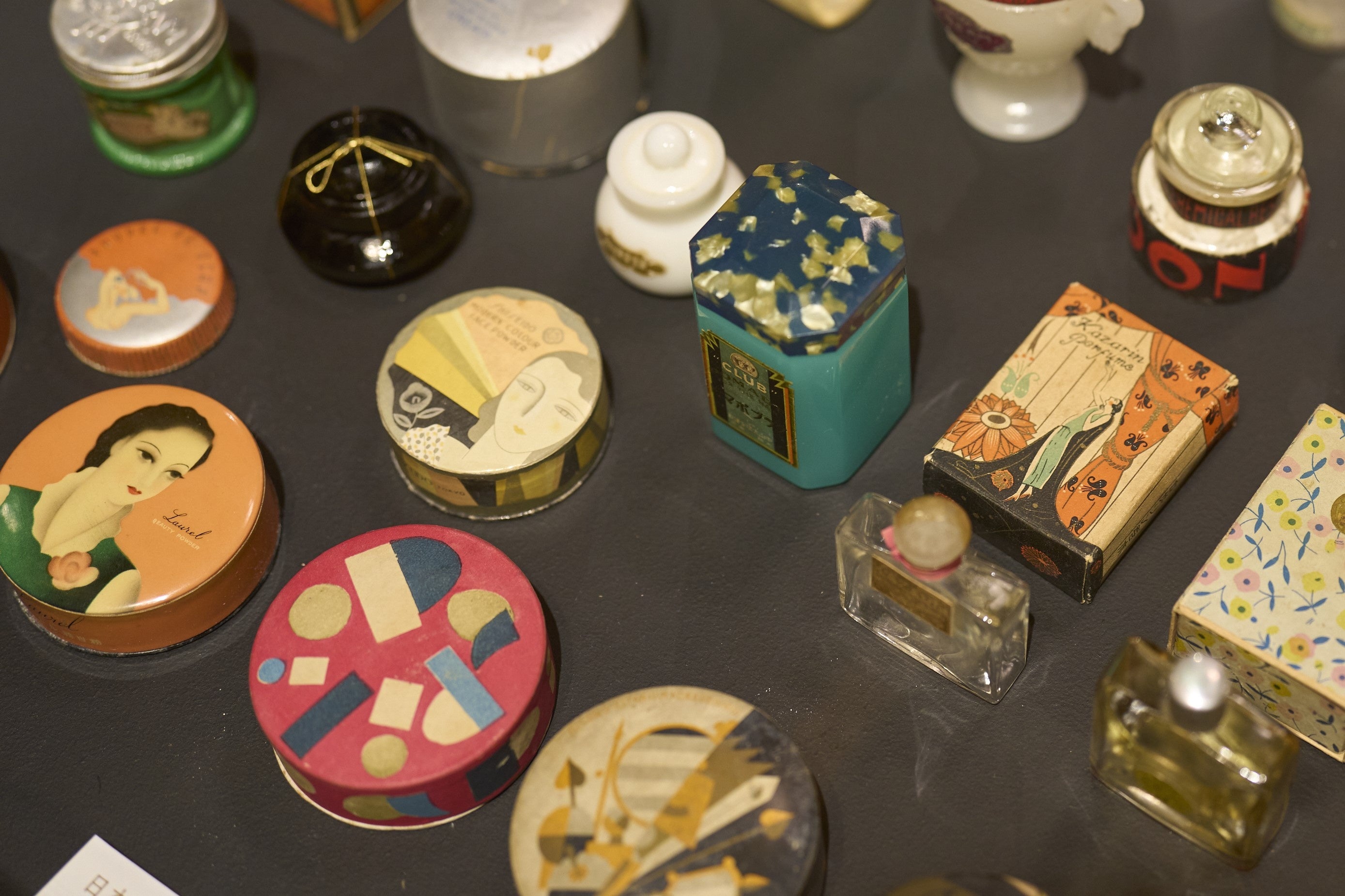 ▼山名文夫や東郷青児など、当時活躍したデザイナーや画家がデザインした化粧品。
