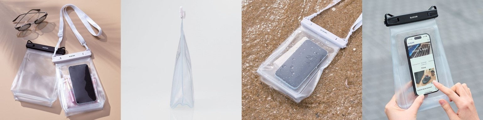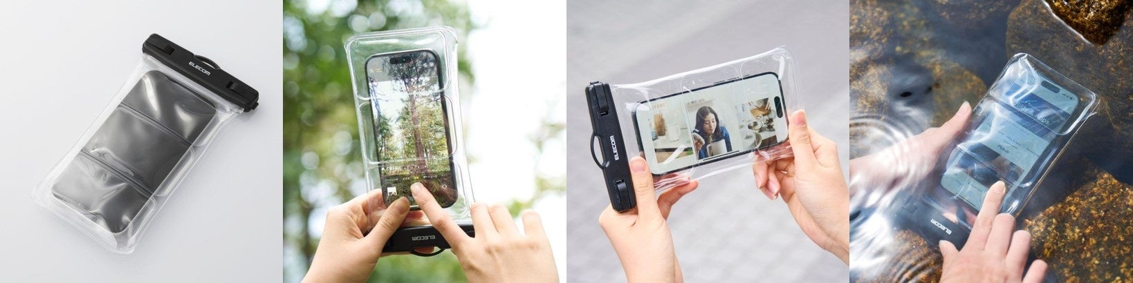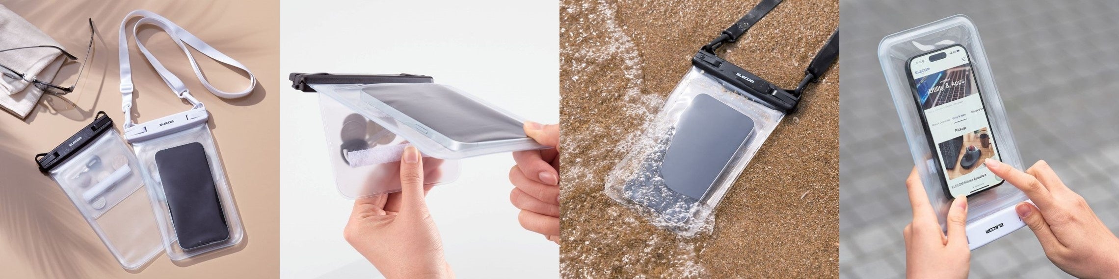 海水浴やプール、スキー、スノーボードなどのレジャーで、水や汚れを気にすることなくスマートフォンを使用できます。約6.9インチ以下のスマートフォンに対応しており、ケースに入れたままのタッチパネル操作が可能です。