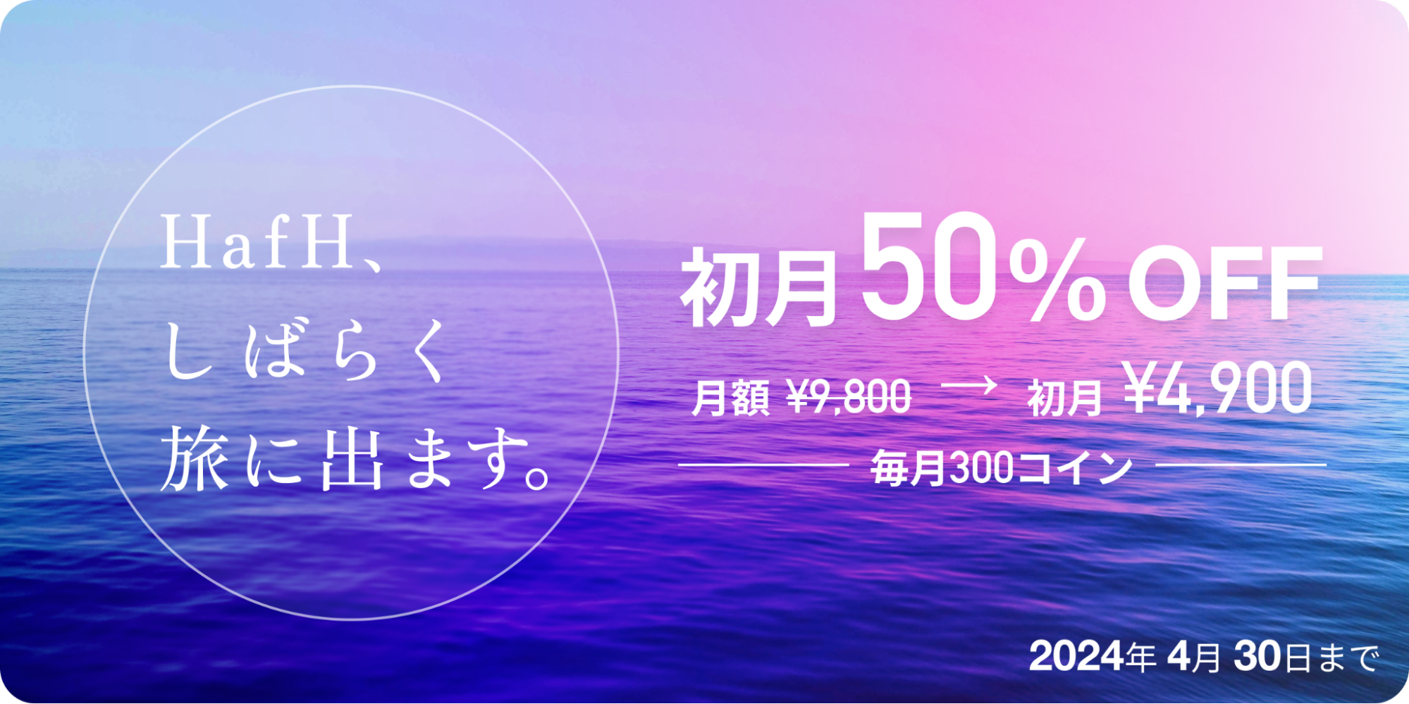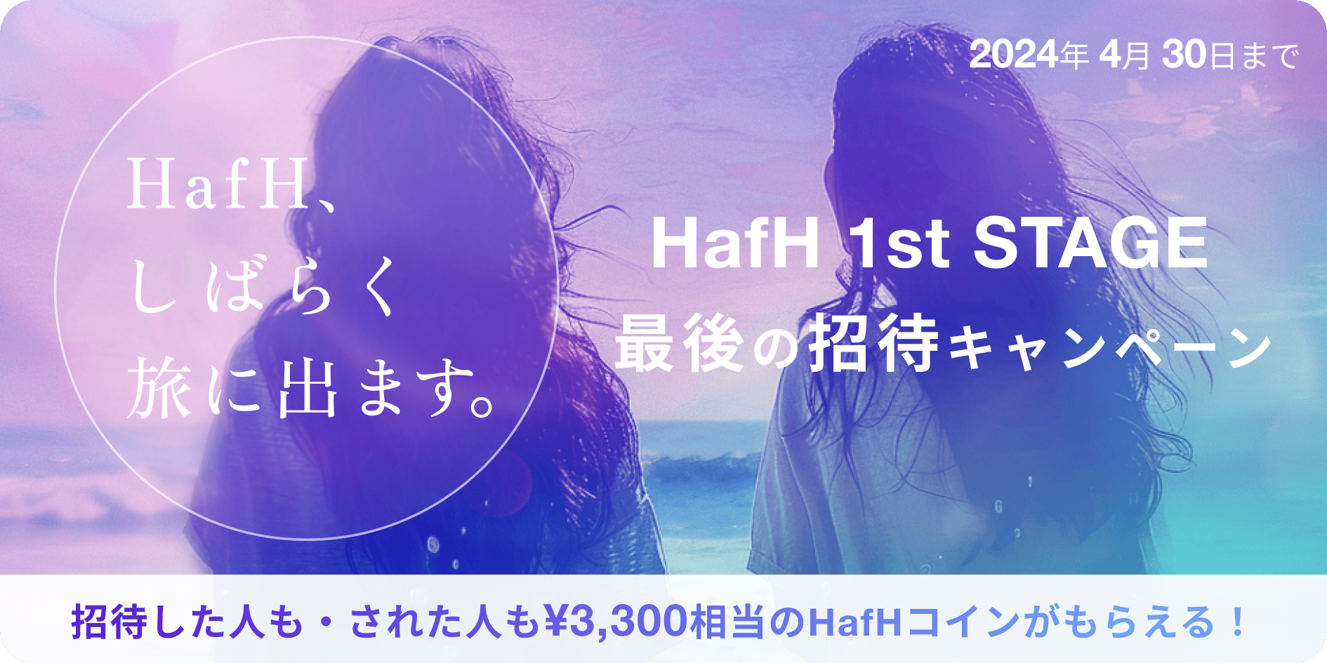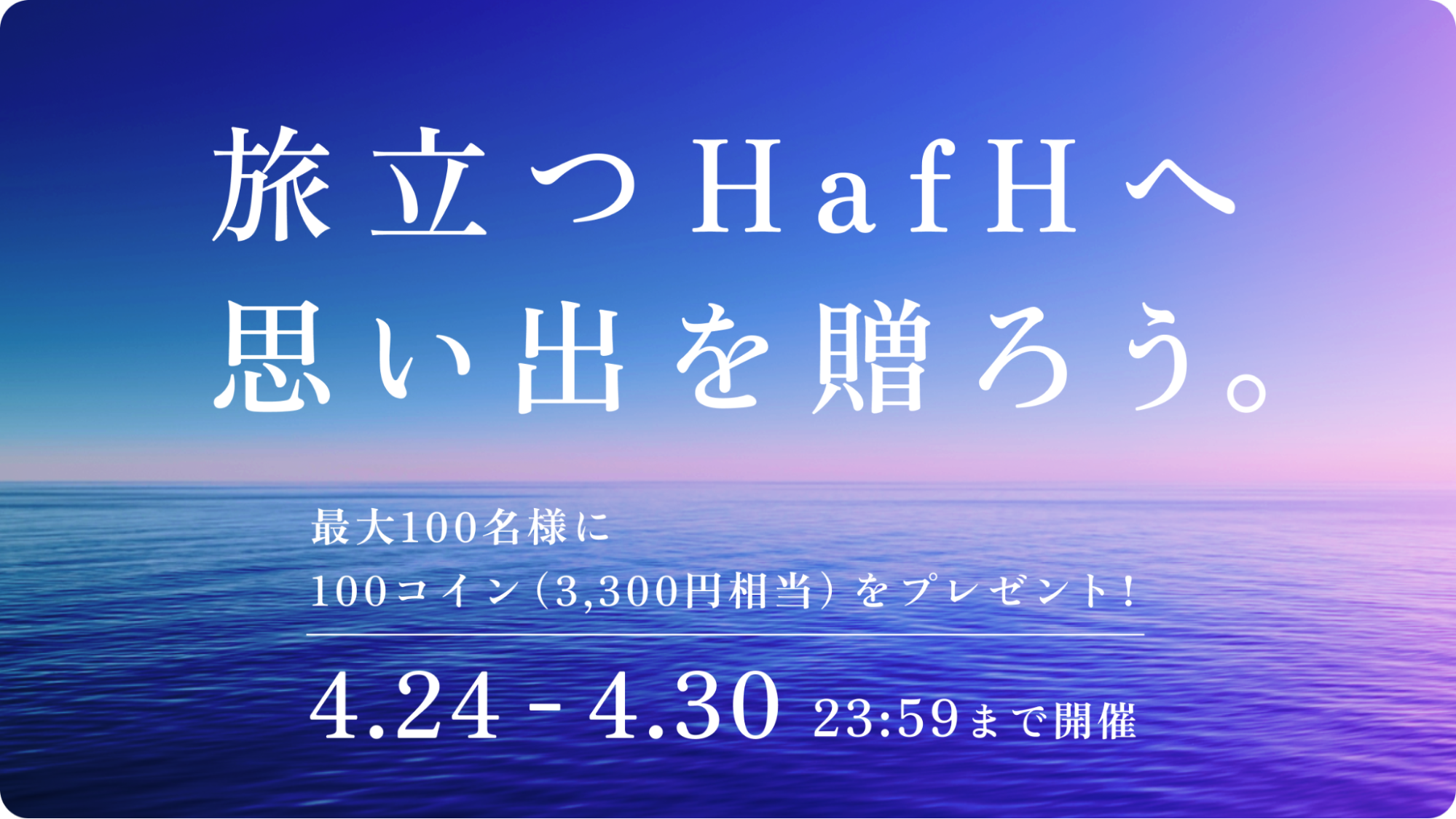 2024年5月からの新規会員募集停止前に、「新規登録いったん停止!HafHしばらく旅に出ます」キャンペーンを実施し、【3000名限定】で1st STAGE最後の会員募集を行います。なお、新規会員募集の再開時期は未定です。