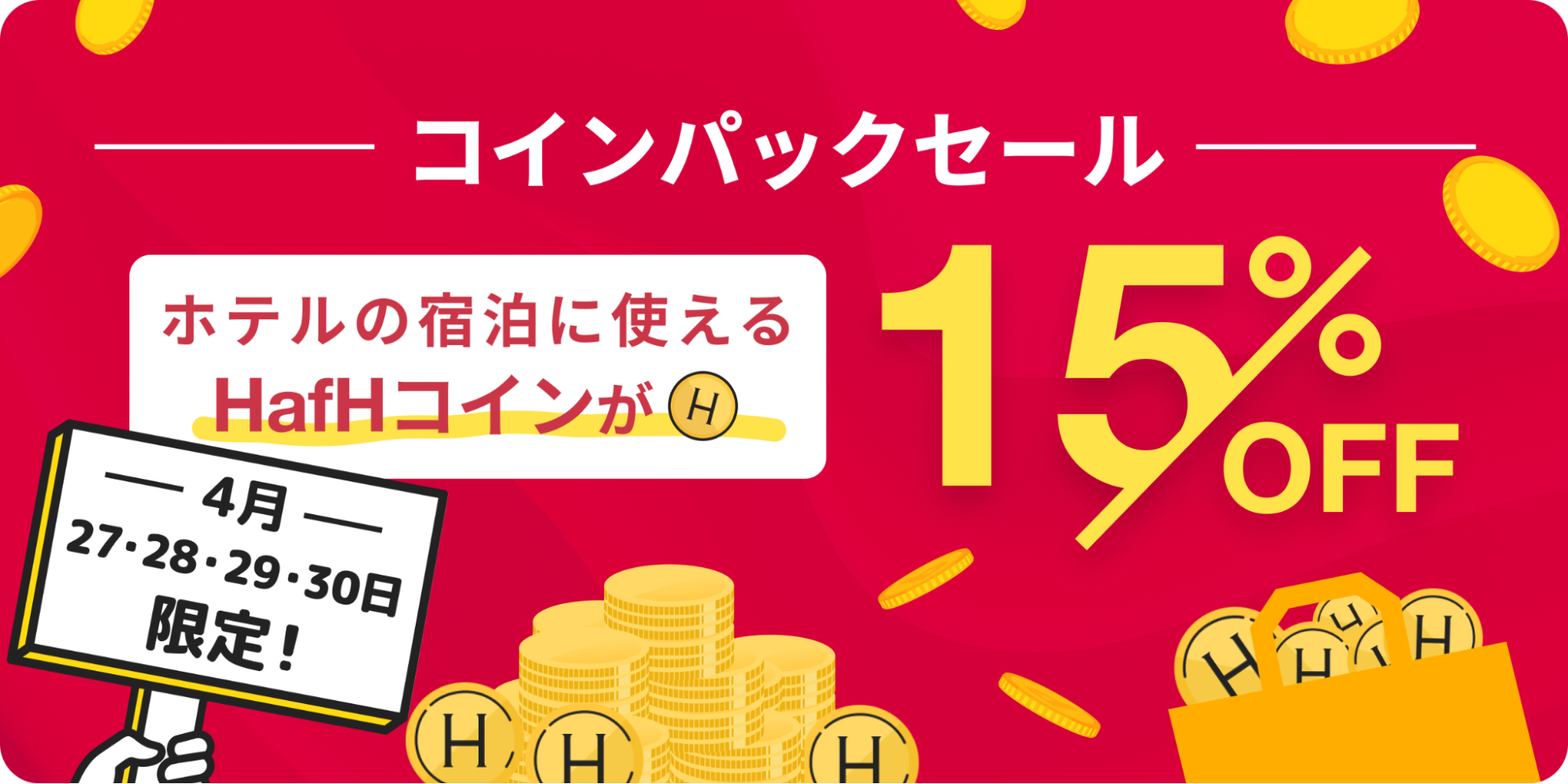 通常よりもお得にコインを購入できるコインパックセールを実施します。2nd STAGEでもHafHを使った旅をお楽しみいただけるよう、コイン補充の機会としてぜひご利用ください。