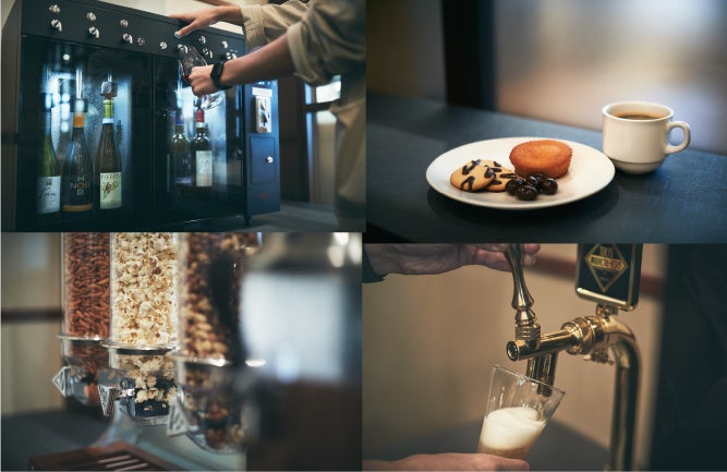 「プレミアムフロア」客室にご宿泊のお客さまは、4階プレミアムラウンジをご滞在中に何度でもご利用いただけます。コーヒーや紅茶、ソフトドリンクの他、ロッテならではのお菓子やオリジナルチョコレートドリンク、ナイトタイムには生ビールやワインをはじめとしたアルコールもお楽しみいただけます。そのほか、朝食利用券をランチタイム時に変更してお使いいただける振替サービスなどもございます。