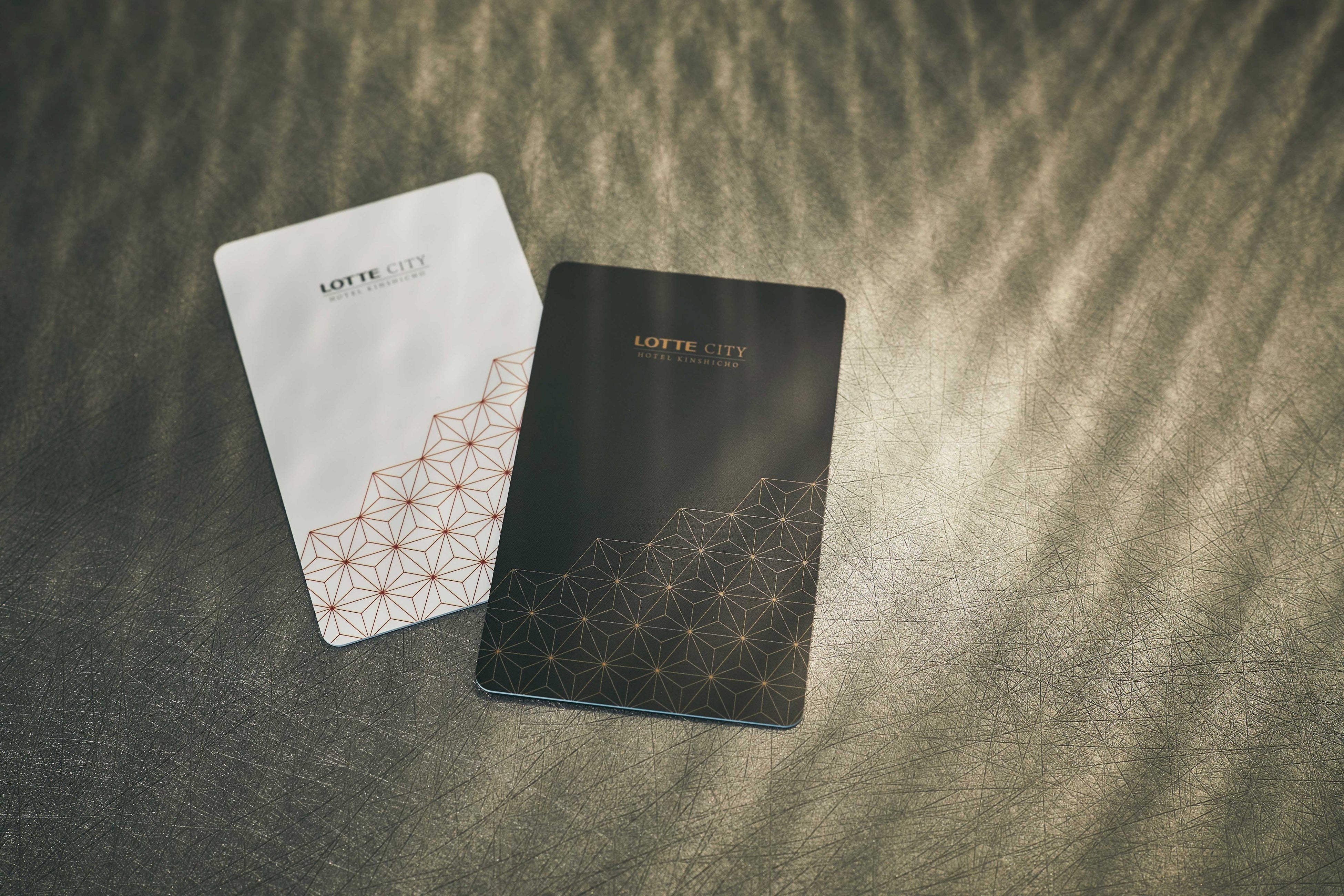 フロントカウンターの背面の壁面で採用した、日本を代表する浮世絵の大家として知られる葛飾北斎(1760-1849)が出版した絵手本「北斎漫画」で紹介された麻の葉柄をモチーフとして落ち着いたデザインに仕上げました。通常フロアとプレミアムフロアでそれぞれ異なるデザインのルームキーをご用意して、ゲストの皆さまをお待ちしております。
