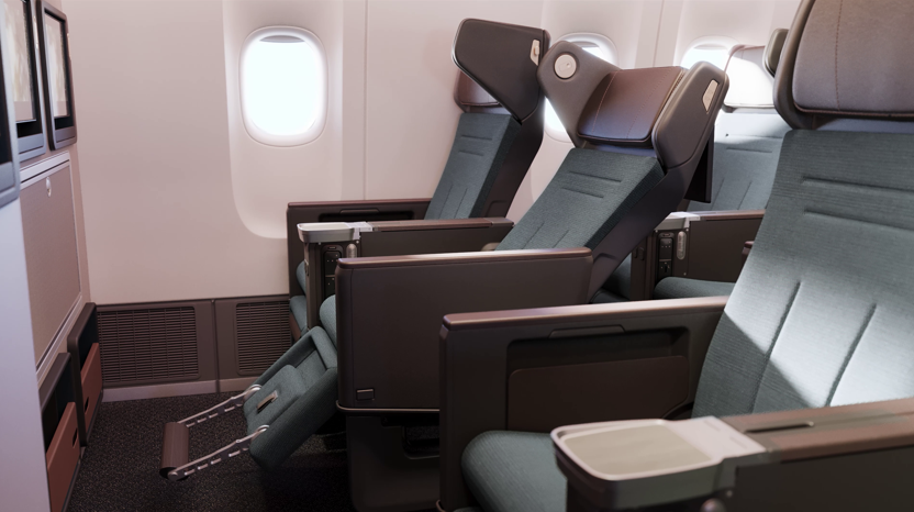 生まれ変わったプレミアム・エコノミークラスの機内は、ゆったりめのシート、モダンな設備やライトなど、快適さとプライバシーの新たなスタンダードを作り上げています。レザーのヘッドレストや座り心地を調整できるシートクッション、ライト付きのプライバシーウィング、超高精細4Kオンデマンド再生やBluetooth対応の15.6インチのスクリーン、使い勝手の良い小物収納などが整い、お客様がご自身のスペースに心地よく籠れるデザインの座席となっています。またプレミアム・エコノミークラス専用の化粧室は機内の左右に設置され、タッチレス機能を採用しています。ムード照明はプレミアム・エコノミークラスを含む全機内に導入し、リラックスできる環境を提供しています。