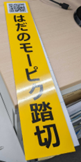 実証実験の際に使用した同様の踏切名称板(今回はQRコードの設置はありません)