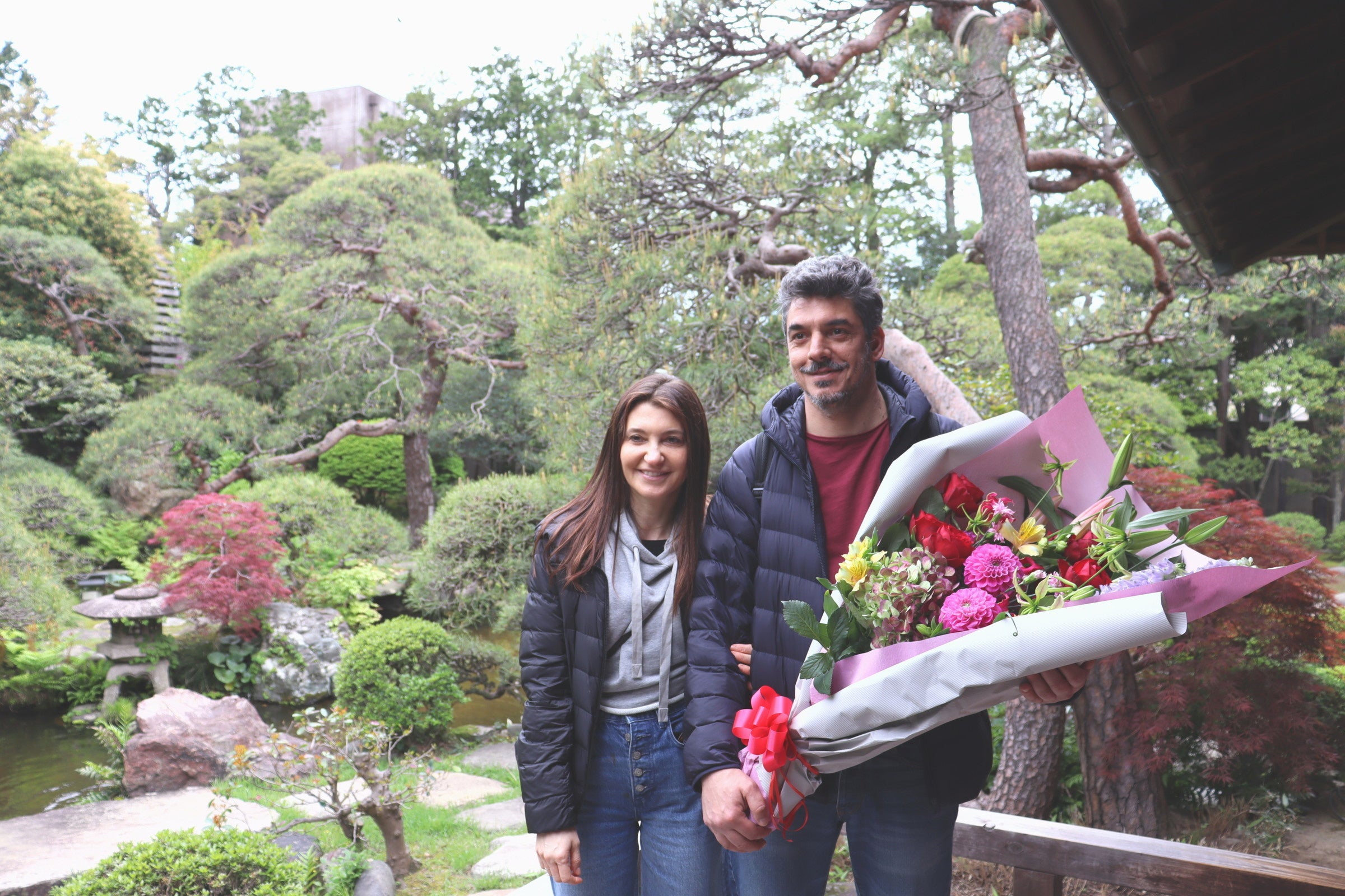 令和6年4月23日(火)、葛飾区山本亭(柴又七丁目19番32号)の来館者数が200万人を達成しました。記念すべき200万人目の来館者は、午後12時頃に来館したイタリア人の「PAOLO LANGIU(パオロ ランジュ)さん(48歳)」と「ELENA GOZZETTI(エレナ ゴゼッティ)さん(46歳)」のご夫婦。5年前に来日経験があり、今回が2回目の来日。柴又への訪問は今回が初めてということで、事前にガイドブック等で調べてお越しくださいました。「この庭園はとても美しい」とご夫婦からお褒めの言葉をいただきました。