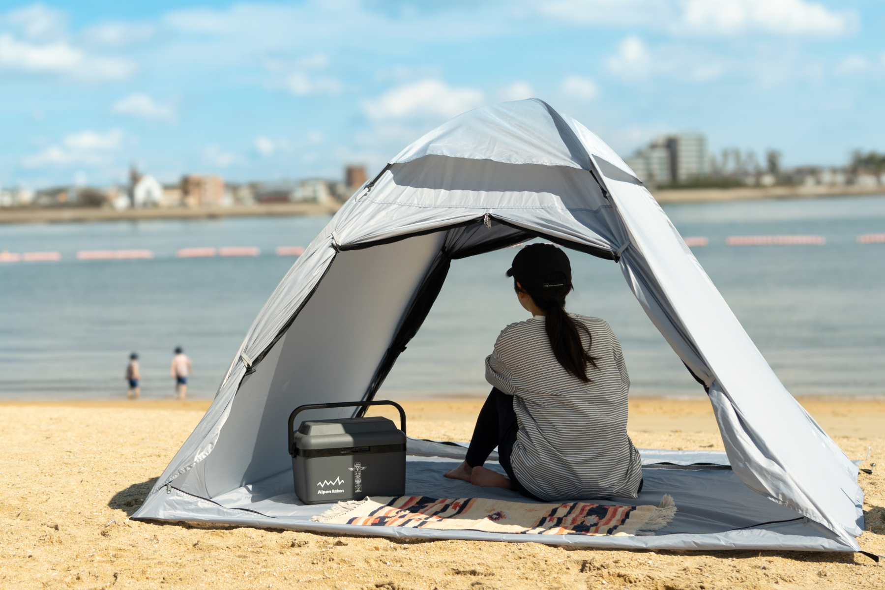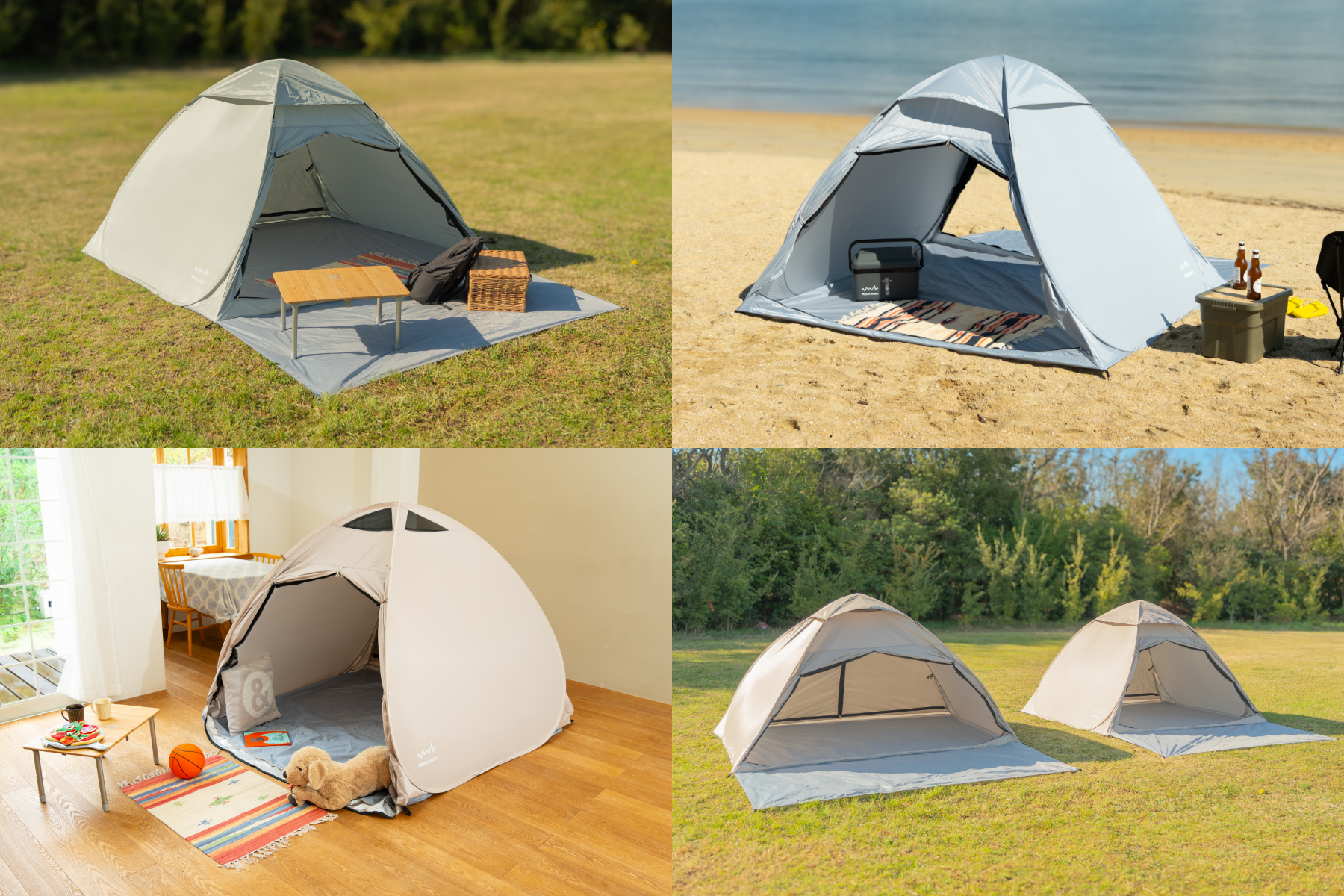 風の通りを考慮した前後フルオープン構造のポップアップシェードは、紫外線を防止するための加工が施されしっかり肌を守り、また、累計3万点販売した大人気モデルである約70mmのインフレータブルマットは、後継モデルとして滑り防止生地を採用し、グレードアップした上で価格を据え置きました。
