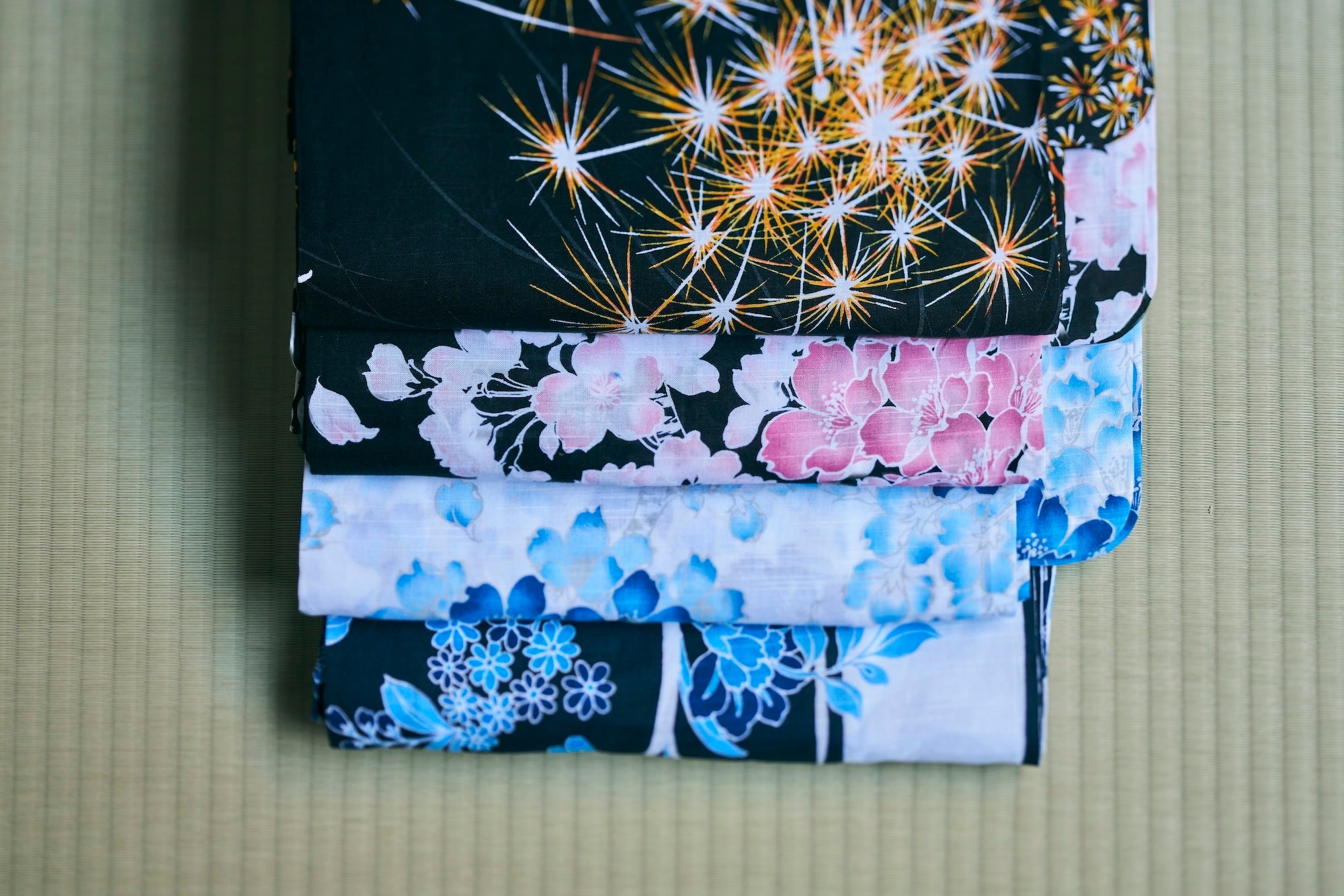 浴衣:浴衣は春夏秋冬の風物や象徴的な花などが描かれた柄のものを豊富にそろえています。季節の訪れ、変化と共に、ご宿泊中のお召し物でもお楽しみください。