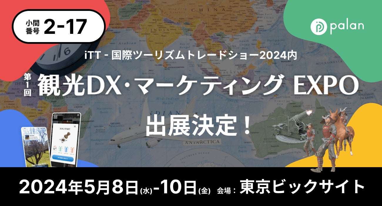 株式会社palan (本社:東京都渋谷区、代表取締役:齋藤 瑛史)は2024年5月8日〜10日に東京ビッグサイトにて開催されます「第1回観光DX・マーケティングEXPO」に出展致します。
