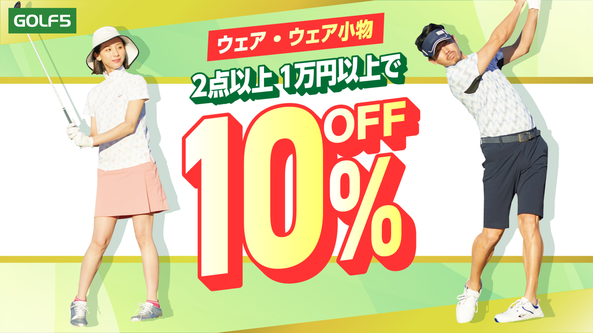 ・ゴルフウェア・ウェア小物(ベルト・キャップ・グローブetc…)など2点以上1万円以上お買い上げで10%OFFになるまとめ買い企画を実施。