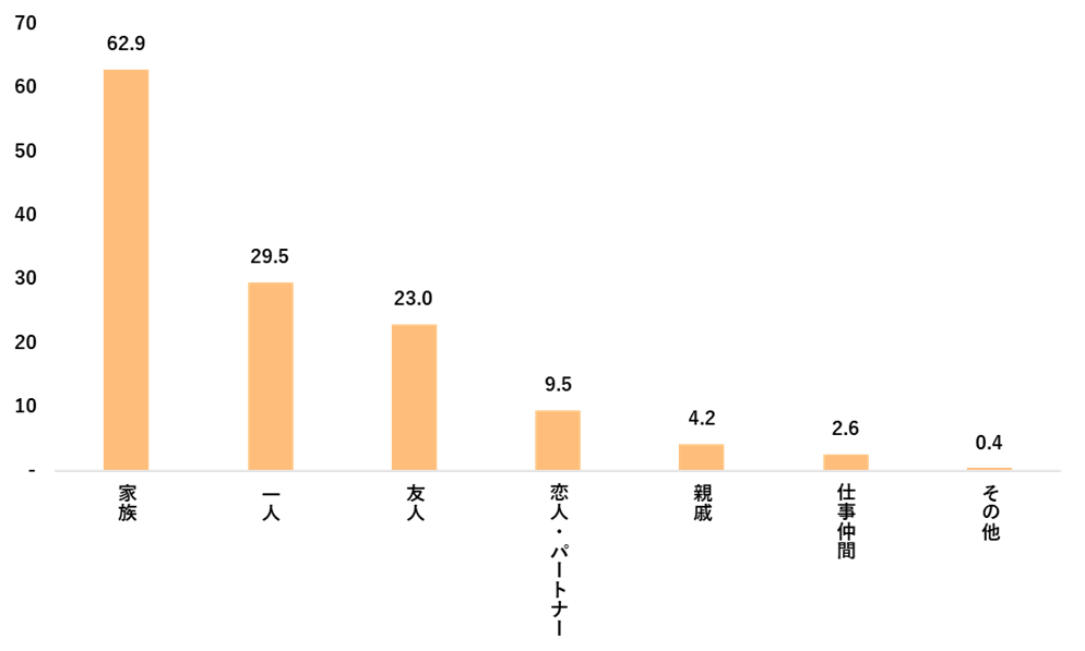 一緒に過ごしたい相手は、1位「家族」が約6割、2位「一人」が約3割