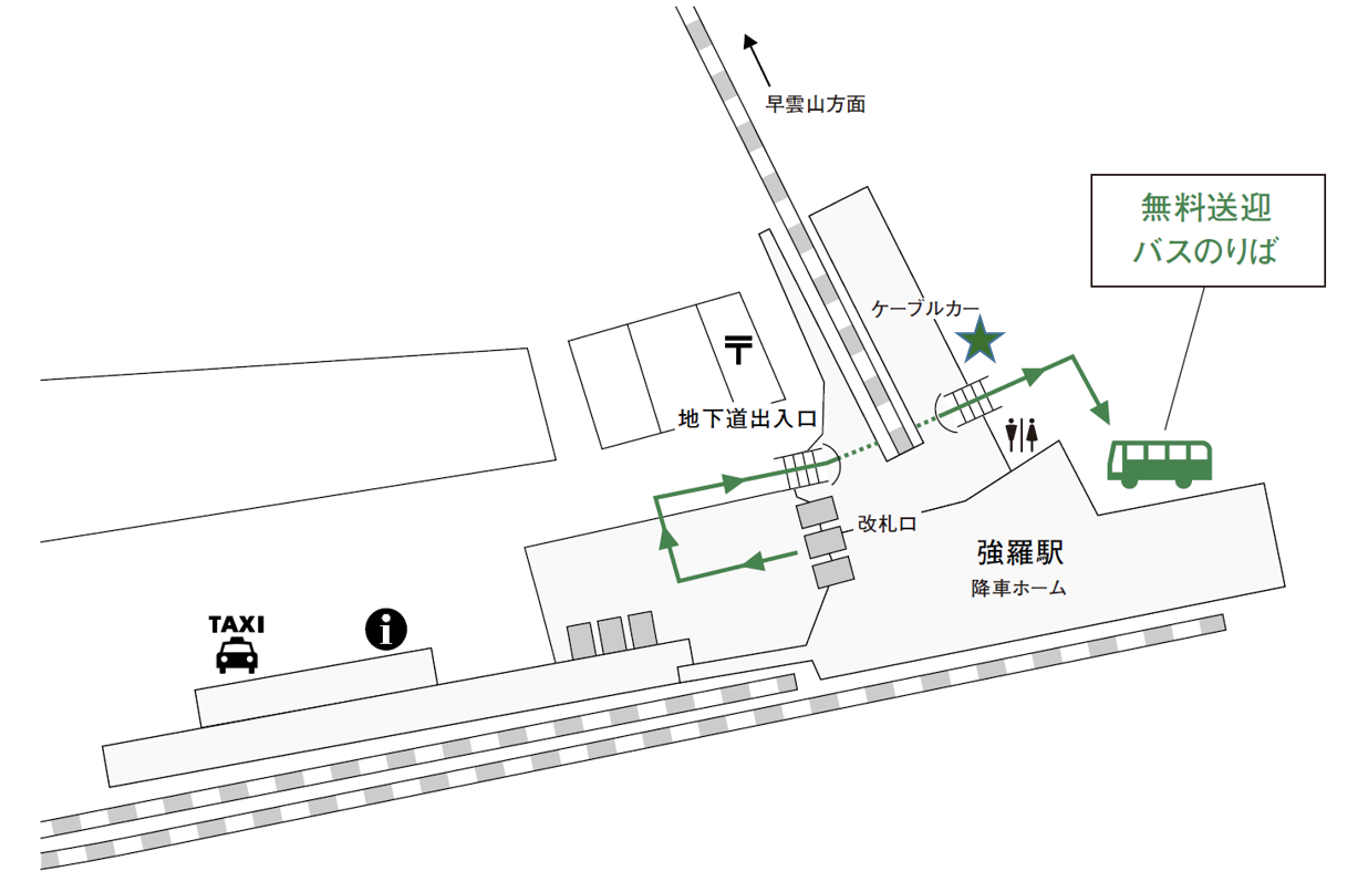 強羅駅の地下通路そばの駐車場(4番)から発着します。