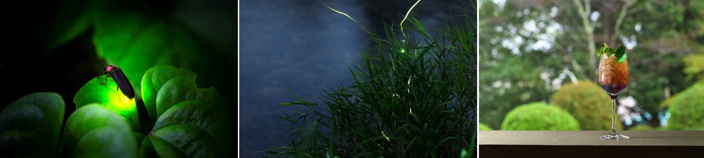 「ホタル観賞ナイトツアー」では、オリジナルで制作したホタル観賞マップを手に、ネイチャーガイドとともに豊かな緑と湧き水に恵まれたホタル観賞スポットを巡ることで、記憶に残る初夏の一夜をお楽しみいただけます。終了後には、暗い夜空の下、生い茂る緑葉に隠れた淡い光を放つホタルをイメージしたホタルカクテル1杯(モクテルに変更可)を、グランヴォー スパ ヴィレッジ内の『BARもみじ』にてサービスします。