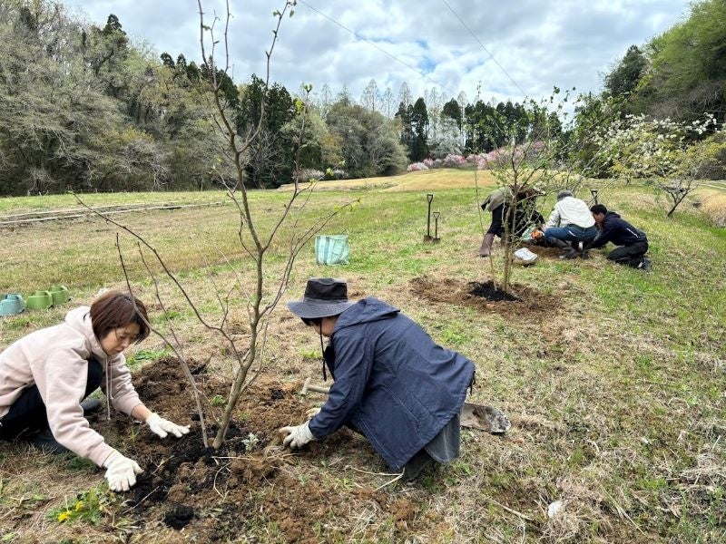「日本ホタルの会」のアドバイスを受け、落葉の多い時期である11月から3月にかけて定期的にホタルが生息する沢の流水が適切に流れるよう水路に堆積した落ち葉や泥の除去活動を行っているほか、2024年1月下旬にはこれまでの大雨や台風で堆積した泥砂を除去することでホタルが生育できる場所を復活させました。さらに、4月11日(木)には、ホタルの生育環境維持の長期的な対策として、沢の水温上昇を防ぐことを目的に植樹活動を行い、ジューンベリー、トサミズキ、ヤブデマリ、マルバという4種類の樹を植えました。2〜3年後には、植えた樹が大きく成長して日陰を作り、沢の水温上昇を防ぐことで、ホタルが生息するエリアの拡大が期待されます。