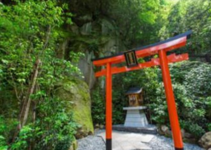 ■「箱根小涌園 天悠」の渓谷庭園内にあるパワースポット!真っ赤な鳥居が新緑に映える「箱根温泉神社」