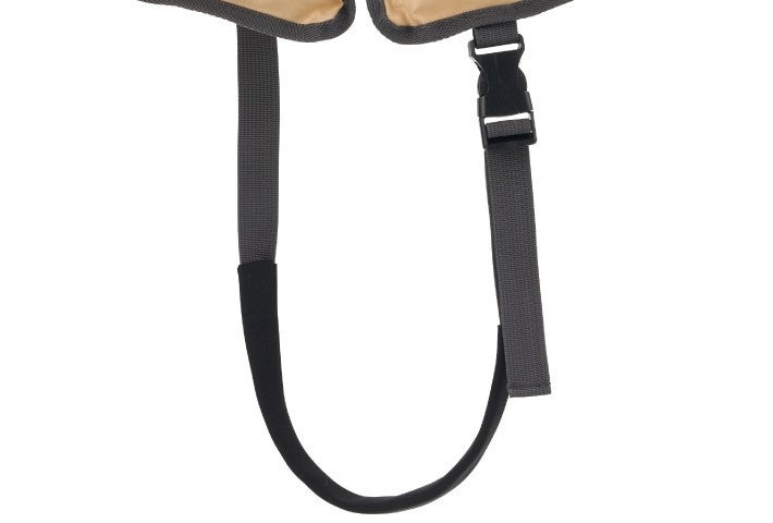 抜け落ちを防ぐ股ベルトも身長に合わせて調節可能で、バックルで着脱も簡単です。柔らかなフォーム素材を配置しているので子供のデリケートな肌でも股ずれしにくく、着用して水中に入った際に体が抜け落ちるのを防ぎます。