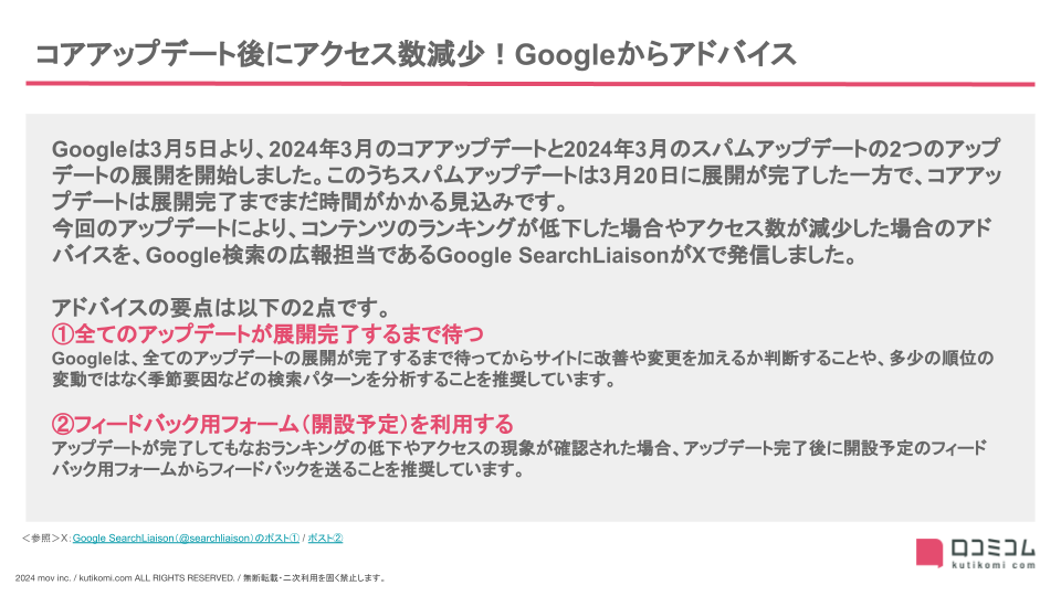 コアアップデート後にアクセス数減少!Googleからアドバイス