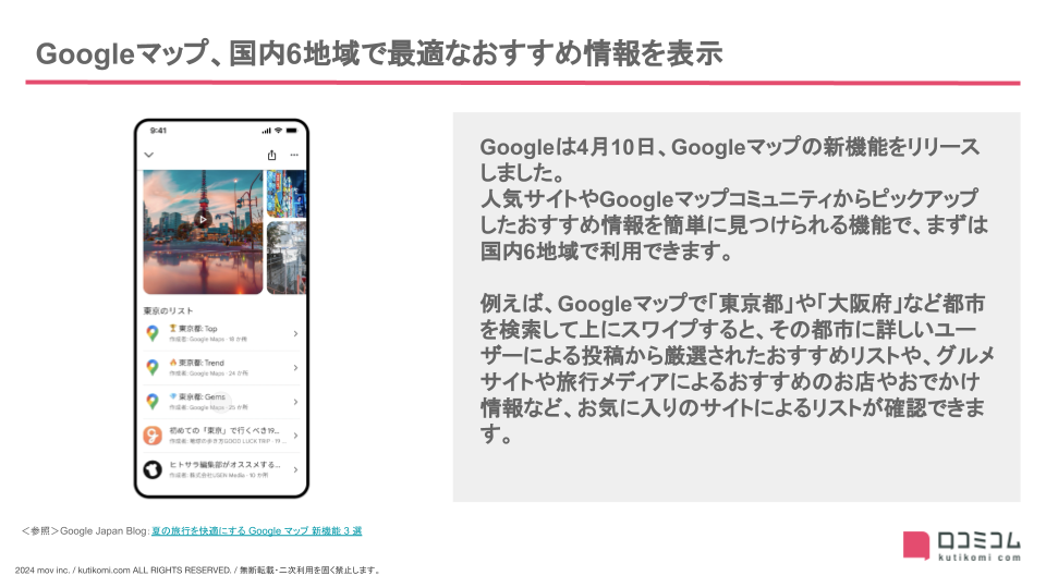 Googleマップ、国内6地域で最適なおすすめ情報を表示
