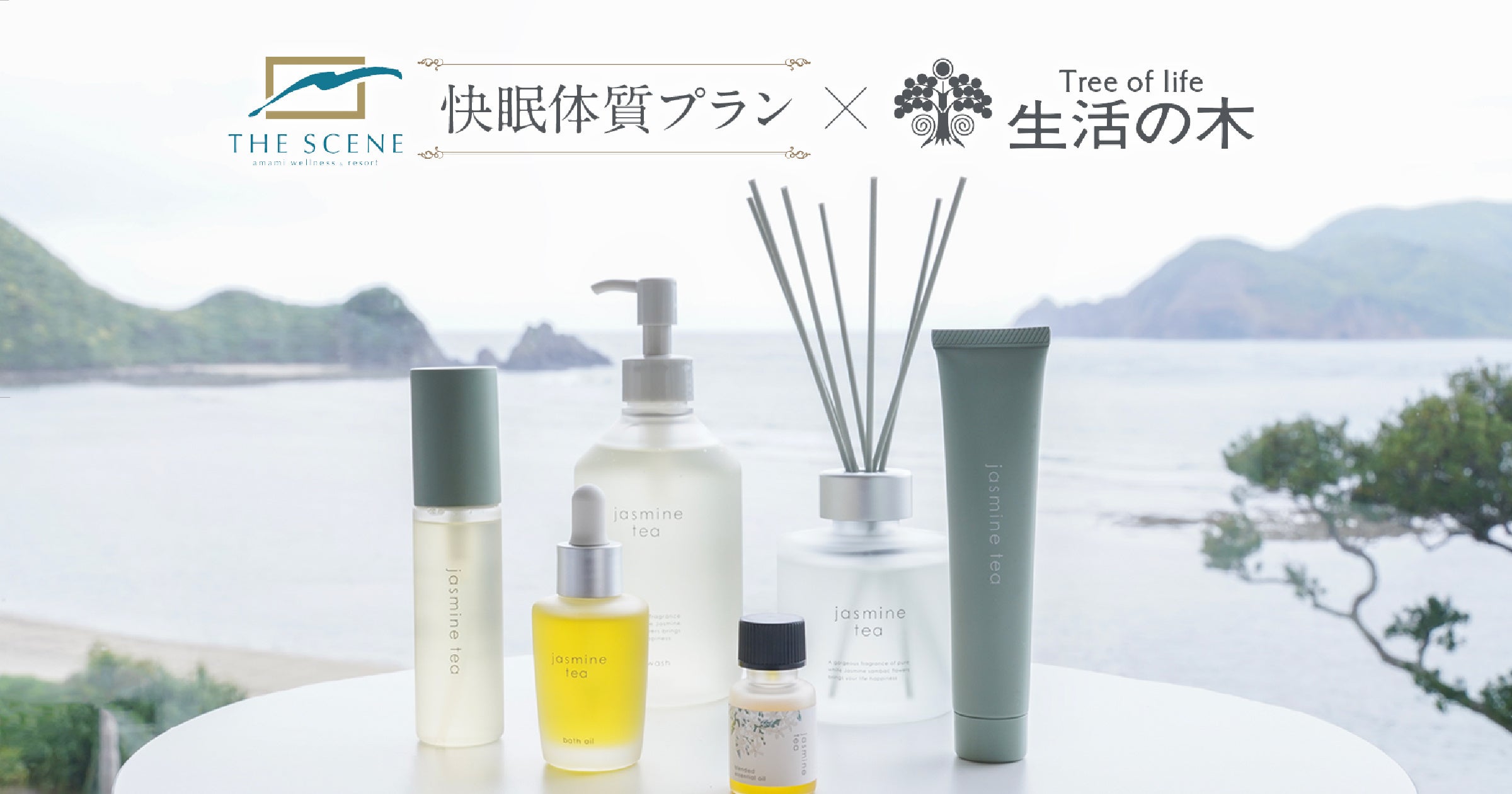 奄美大島のウェルネスリゾートホテル「THE SCENE」では、眠りの質を高める【快眠体質プラン】に、自然と調和したライフスタイルを提案する「生活の木」の商品を取り入れた期間限定の宿泊プラン(コンセプトルーム)の予約を開始しました。