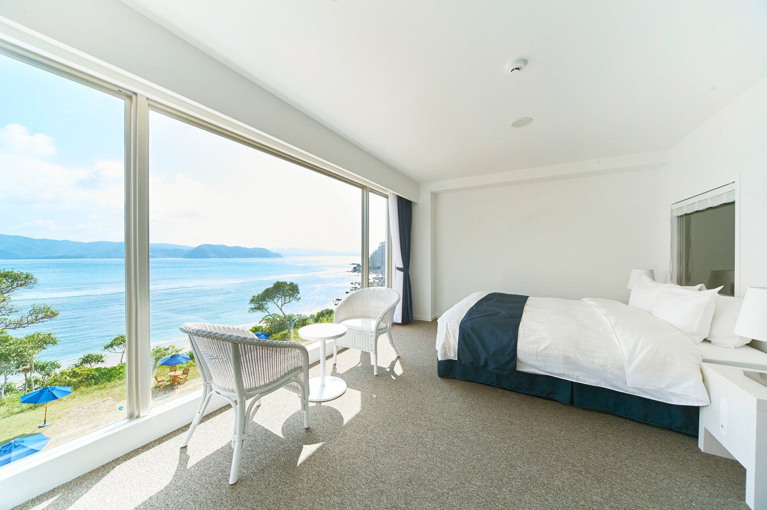 お休みの際はカーテンを閉めずにきれいな月の明かりだけで眠りにつくと、翌朝は奄美のきれいな海と朝日が昇る絶景を見ることができます。