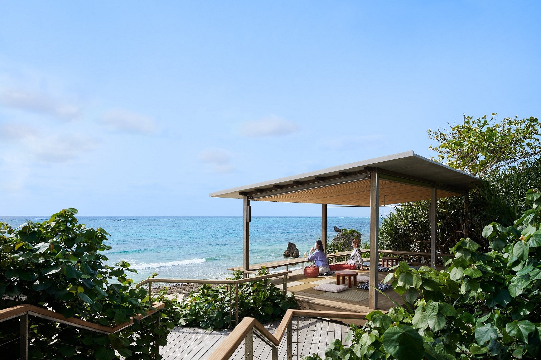 入り江を囲うような崖の上にたつバンタカフェでは、浜辺へと続く「海辺のテラス」や、高台から水平線を臨む「大屋根デッキ」、壁一面の窓から海を望む屋内の「ごろごろラウンジ」など、4つのエリアがあります。期間中は、南国沖縄らしいトロピカルフルーツを使ったメニューが豊富に揃い、海を眺めながら、沖縄の夏を満喫できます。
