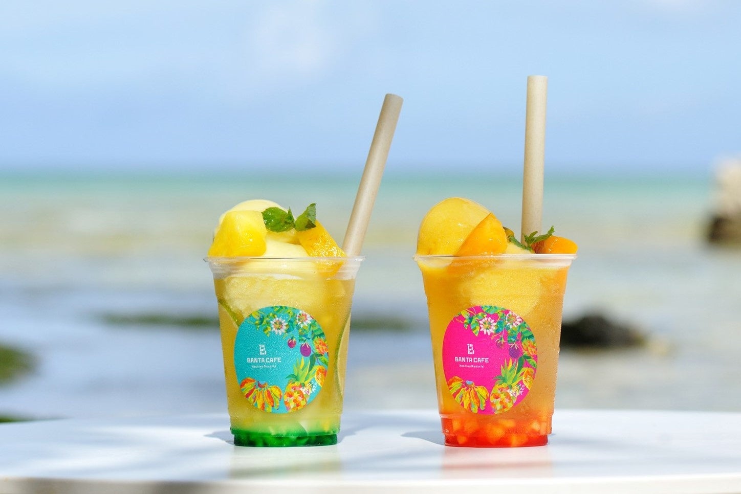 沖縄の言葉で美しいという意味の「ちゅら」と「ジェラート」を合わせたバンタカフェのメニュー「ちゅらーと」。トロピカルフルーツフレーバーのジェラートに、シャリシャリに凍らせたフルーツを合わせた「もっとトロピカルちゅらーと」を今年も販売します。まずはスプーンでパフェのように味わい、溶けたらストローでシェイクのように楽しむ、海を眺めながらゆっくりと堪能できるデザートのようなドリンクです。フルーツリキュールを合わせた「大人のもっとトロピカルちゅらーと」もあり、太陽の下でアルコールを楽しむリゾートでの休日を満喫できます。