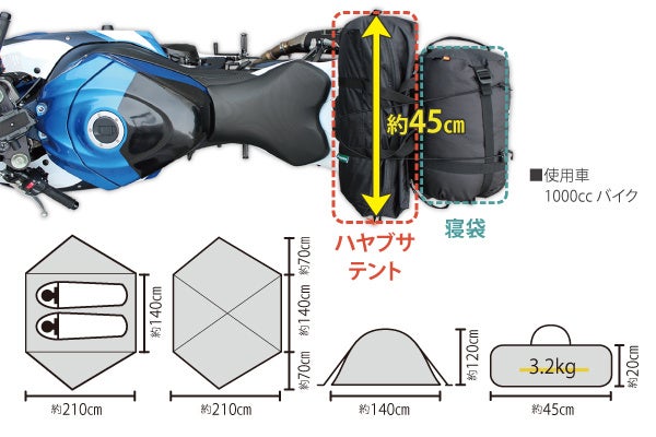 バイクに余裕で積める幅45cm狭小タイプのテントにおすすめの新デザインが登場
