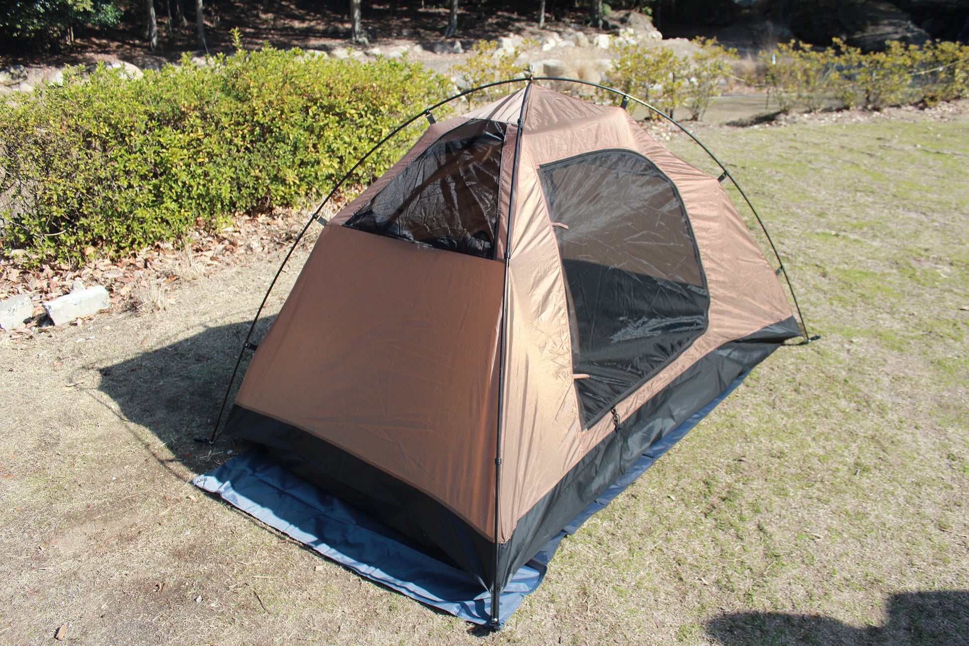 ドーム型設計で流線形なので、風雨に強く頑丈なテントです。アルミのクロスフレーム構造で、剛性・弾性に優れるため強風にも耐えられます