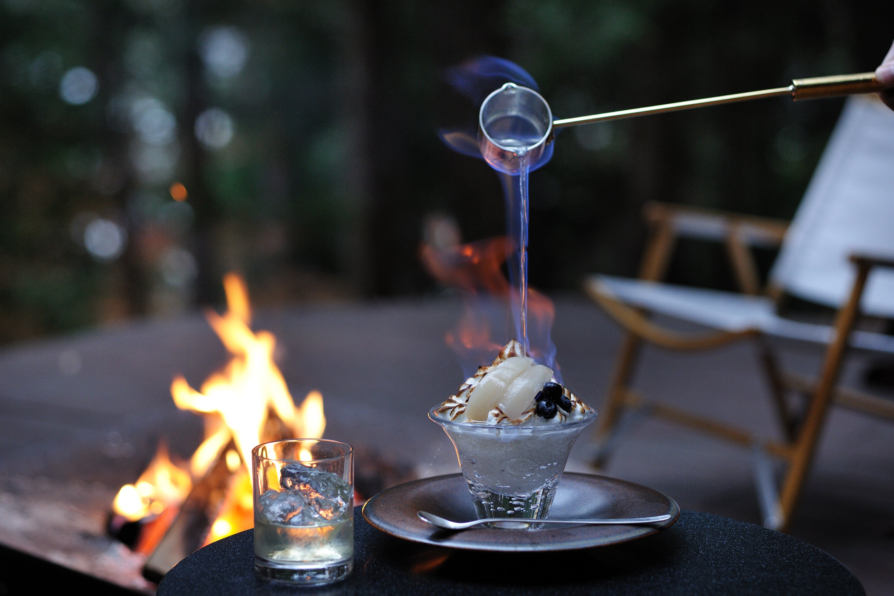 【星のや富士】焚き火で仕上げる燃えるかき氷「夏夜の森 グランピング焼き氷」を提供|期間:2024年7月1日~8月31日