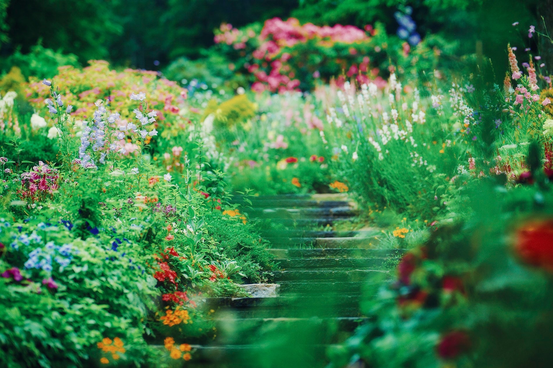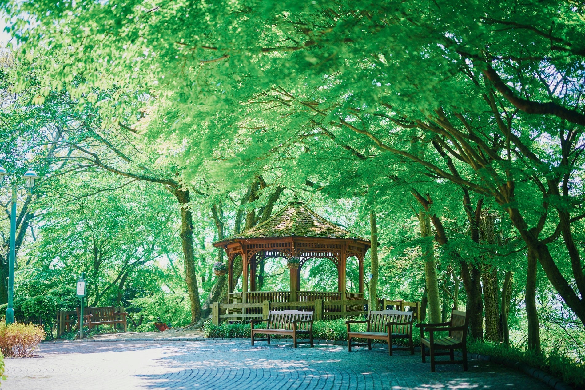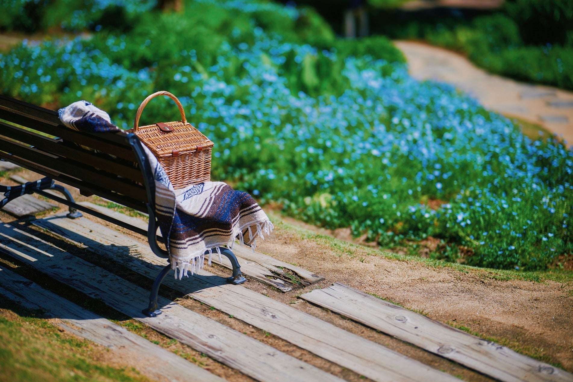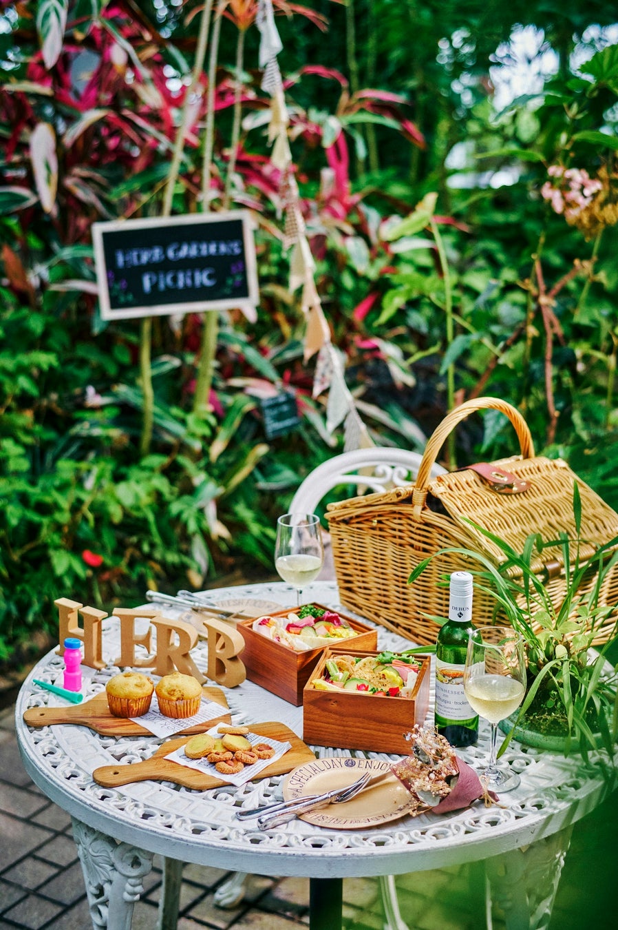 神戸布引ハーブ園のピクニックは、ガーデンが舞台。開放感あふれる園内には、花、ハーブ、芝生、ベンチ、テーブル、東屋などピクニックシーンを彩るロケーションが点在しています。バスケットを片手に、お気に入りの場所を探しながら、最高のおしゃピクを満喫ください