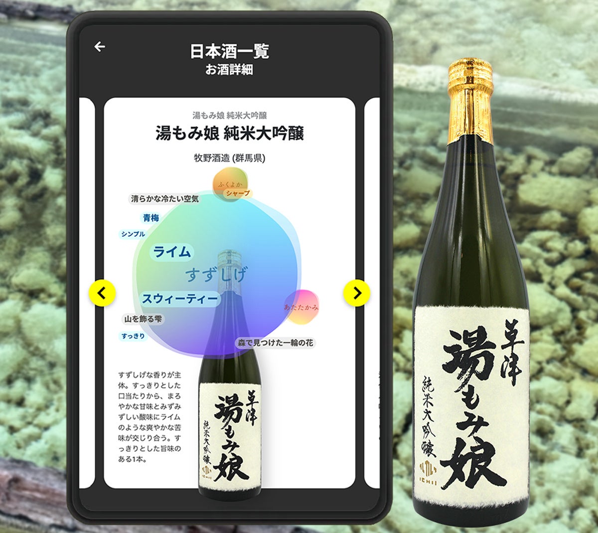 今回の導入では、草津温泉に訪れたお客様に、より楽しいお酒選びを提供し、群馬の地酒の認知拡大を目指します。一井おみやげセンターでは、100種類以上もの群馬の地酒が取り揃えられており、商品を選ぶ楽しさの反面、「どれを選んで良いかわからない」、「ラベルを見ただけでは味が想像しにくい」などの購買における課題もありました。