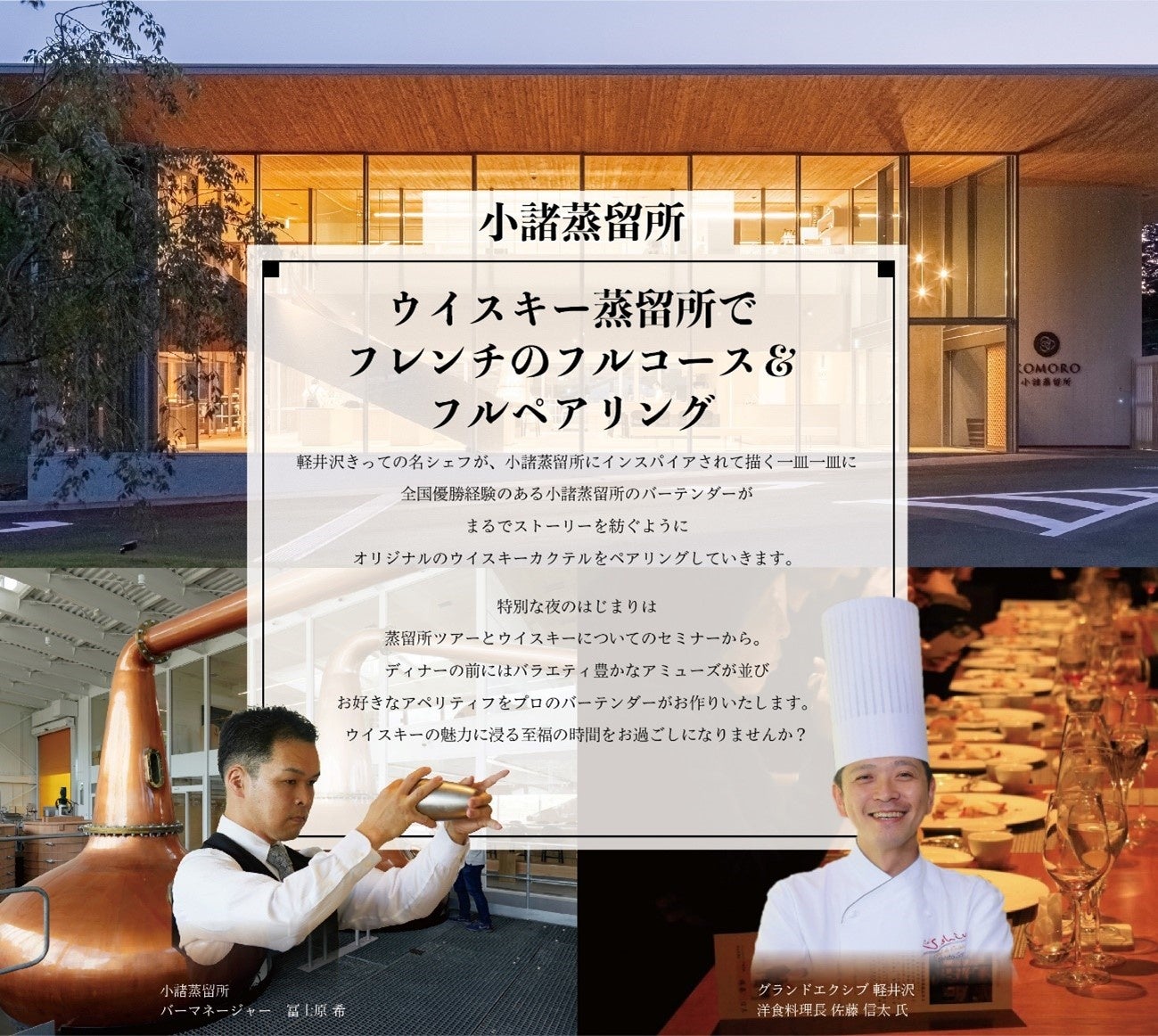 ・「ウイスキー蒸留所でフレンチのフルコース&フルペアリング」〜ウイスキーの魅力に浸る特別な夜 in 小諸蒸留所〜 概要