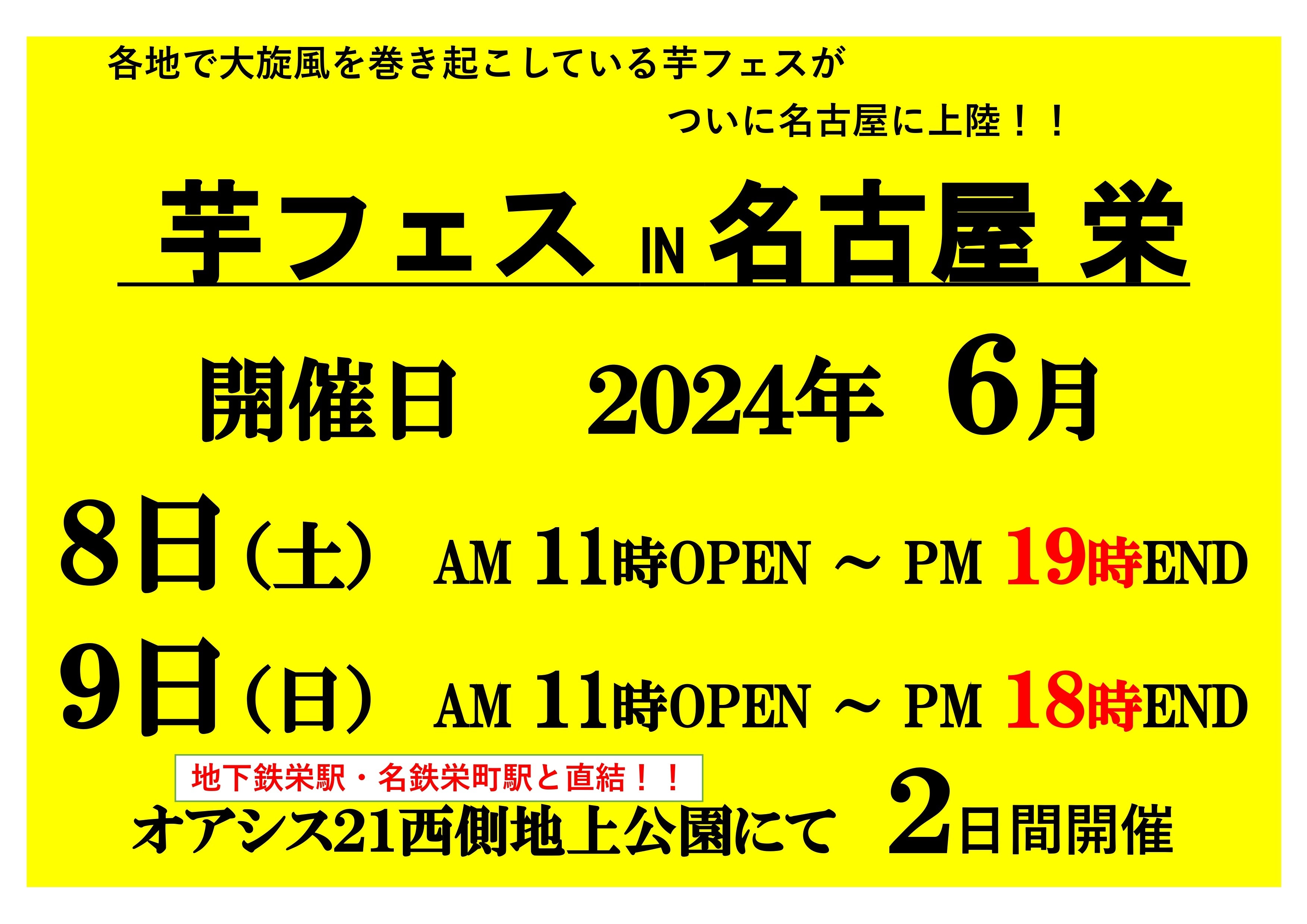 2024年6月8-9日第1回芋フェスIN名古屋オアシス21で芋フェス!開催決定