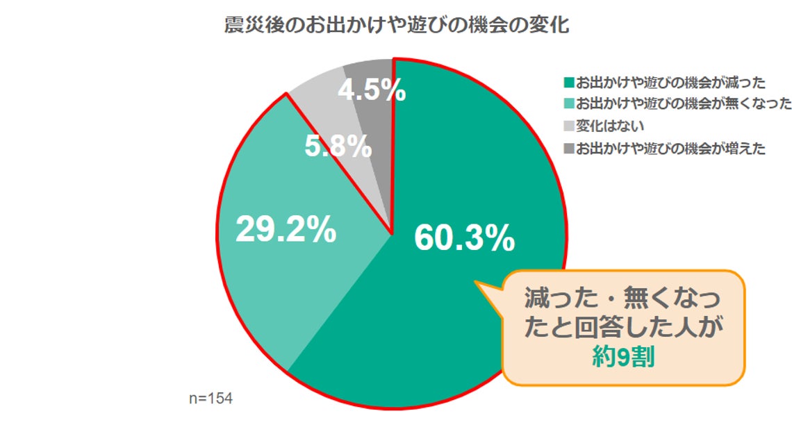 被災地の家庭の約9割が震災後お出かけや遊びの機会が減少したと回答。コロナ終了後の社会トレンドとは相反する結果に