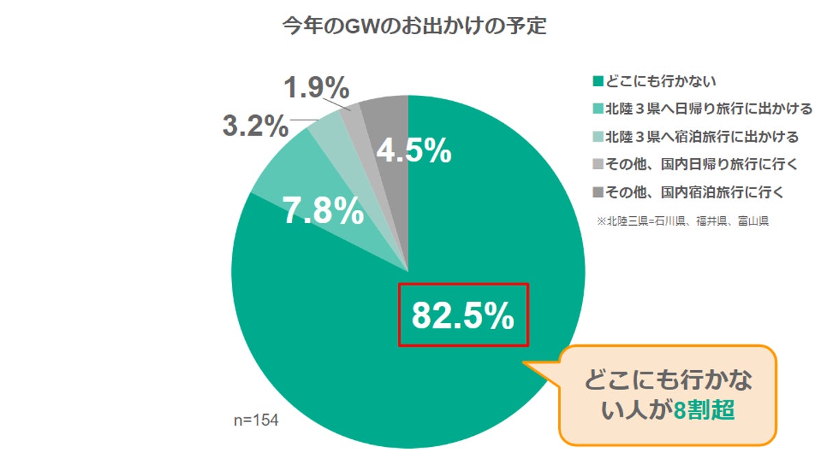 ゴールデンウィークのお出かけについての設問では、今年のゴールデンウィークにどこにも行かないと回答した人は8割を超えています。