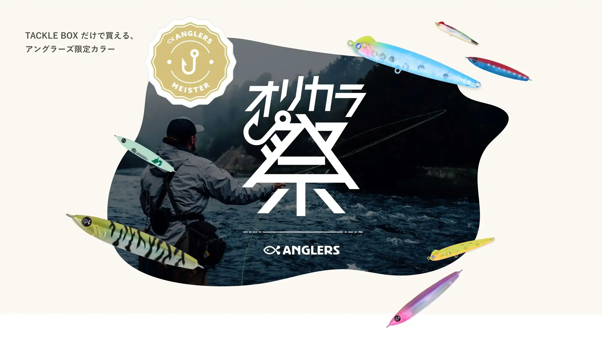 オリカラ祭とは、アングラーズマイスターが様々なルアーメーカーとコラボし、オリジナルカラーを考案するルアー販売イベントです。オリカラルアーは本音が集まる釣具通販「TACKLE BOX」にて数量限定で販売いたします。