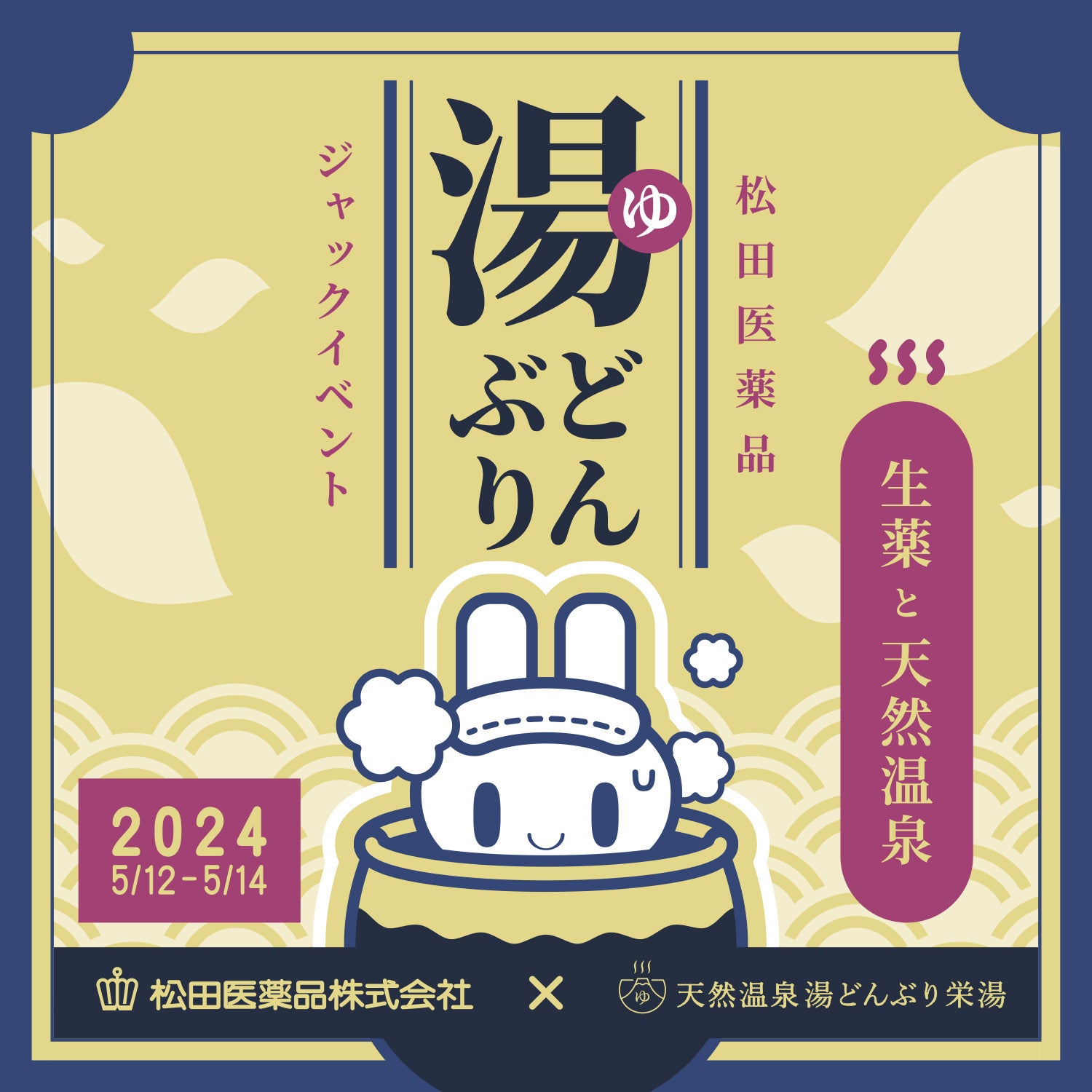 5月12日(日)から5月14日(火)の3日間限定で湯どんぶり栄湯の浴槽を全て松田医薬品の入浴剤を投入します。ご来店をいただいたお客様が更に楽しんでいただけるように様々なコンテンツもご用意しています。