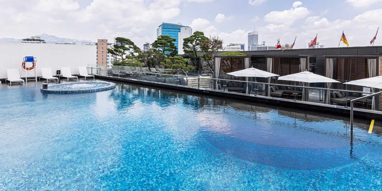 冬でも楽しめるドーム型の開閉式屋外プールや、周辺の南山や仁王山、北漢山などを眺めながらガーデンウエディングが可能なルーフトップの宴会空間も備えており、季節や天気を活かした多彩な運営を可能にしています。