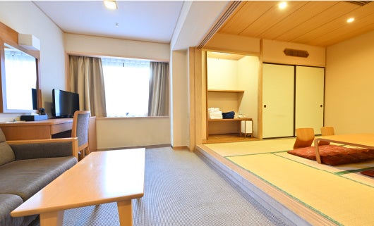 「赤ちゃん連れにぴったりな和洋室タイプのお部屋です。畳があり、バスルームとトイレが独立しているので、