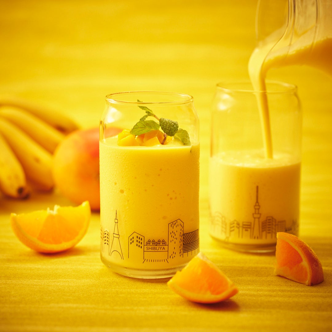 マンゴーとバナナの濃厚な味わいにオレンジの爽やかさがマッチする、夏でもすっきりと召し上がっていただけるスムージー。ハチ公デザインが可愛らしい、ハチ公グラスでお楽しみください。