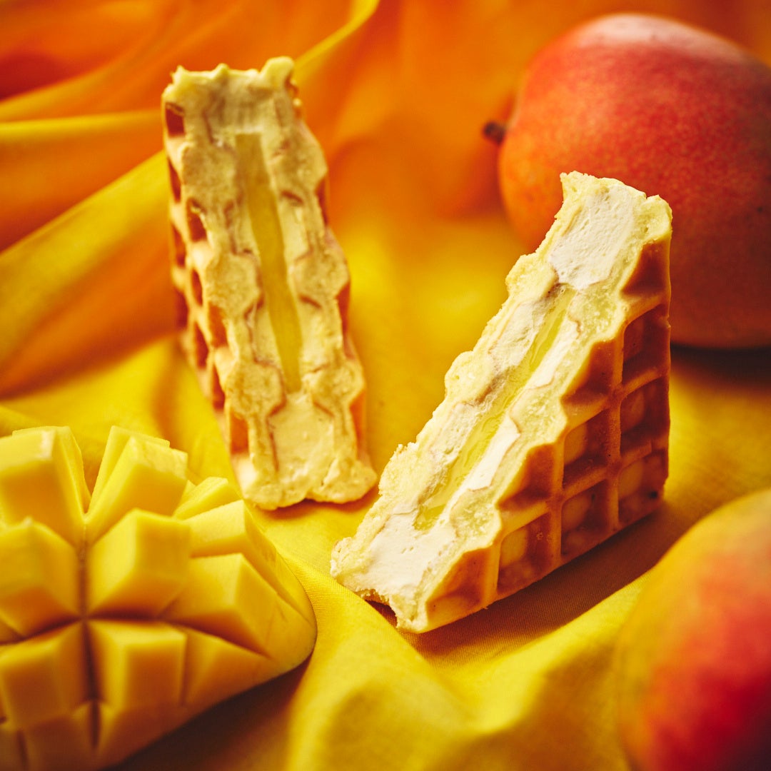 アップルマンゴーのフレッシュな味わいとマンゴークリームの爽やかな甘みが絶妙なワッフルサンド。マンゴースムージーとの相性も抜群です。