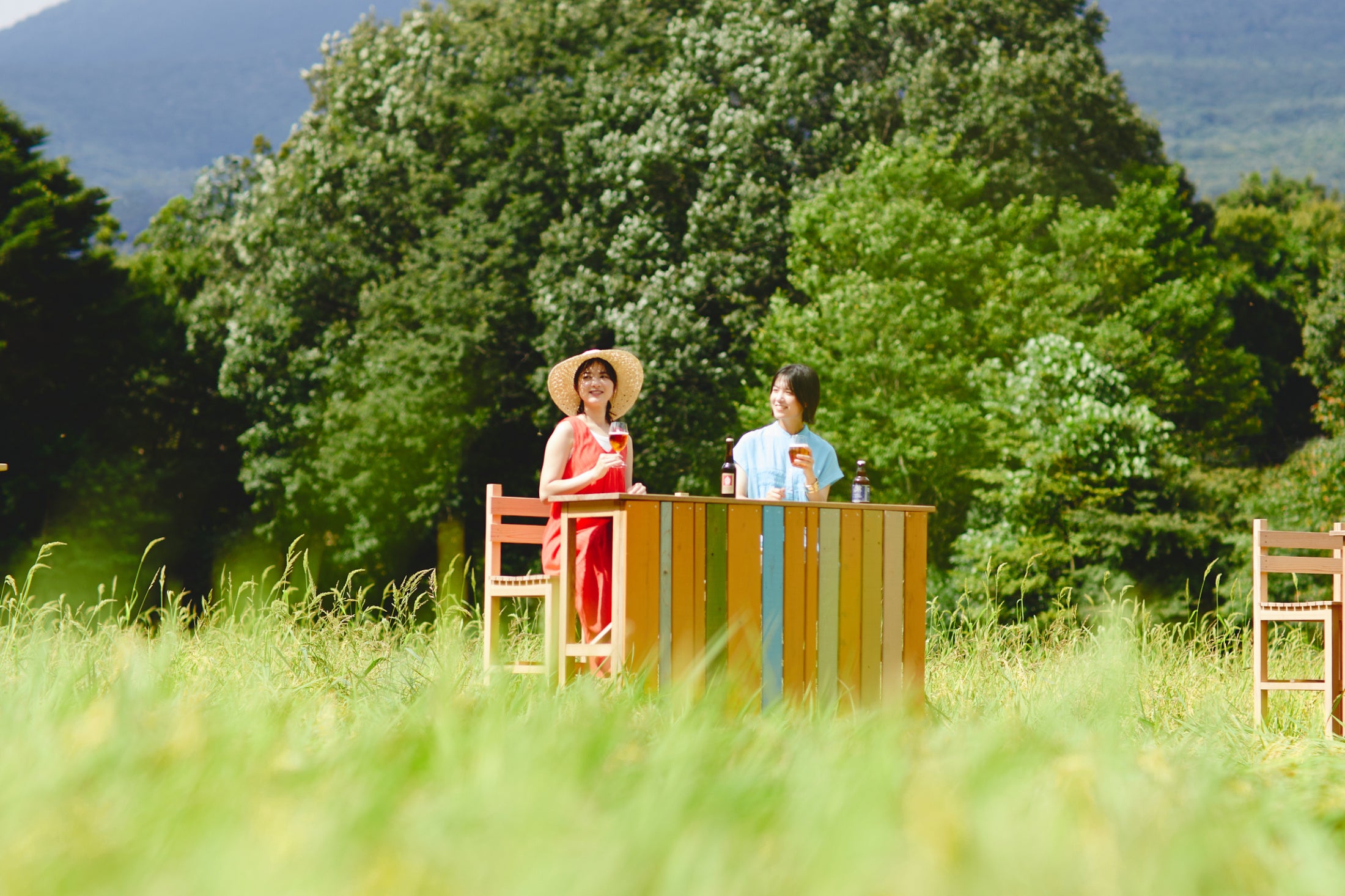 夏の風物詩であるビアガーデンは、夏の夜風や自然に触れられる外の空間で、ビールを楽しむことが醍醐味のイベントです。敷地内に田んぼを有するリゾナーレ那須では、日本の原風景である田んぼで寛ぎ、風にそよぐ緑の稲穂や高原の爽やかな風を感じながら夏のひとときを過ごしてほしいとの思いから「田んぼビアガーデン」を考案しました。