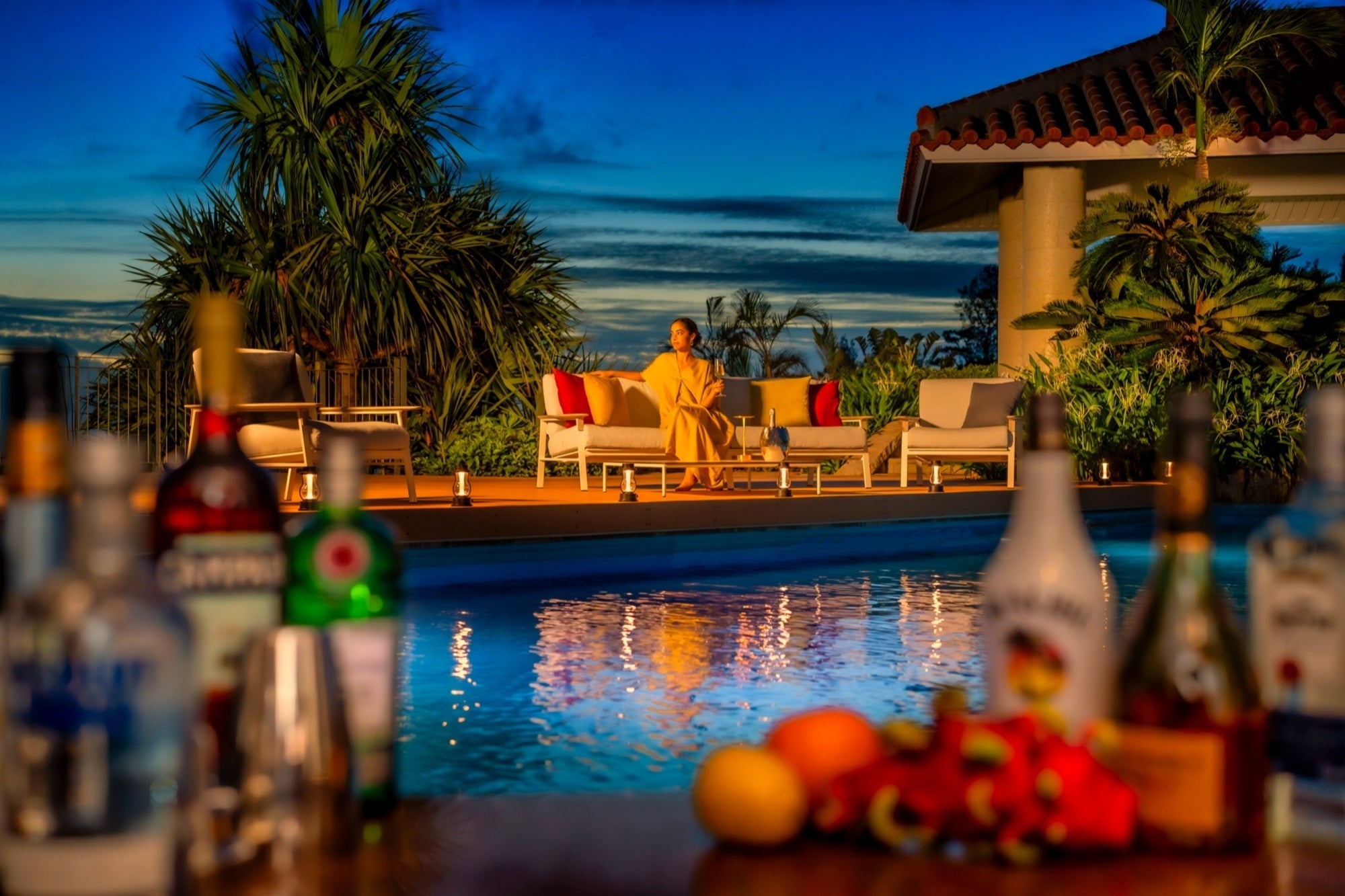 野外プールの中央にあるプールサイドバーでは、様々なカクテルやパフェをお楽しみいただけます。心地よい島風を感じながら嗜むお酒は格別です。普段着でもご利用いただけるので、食後にもお立ち寄りいただけます。抜群の解放感ときらめく星空の下、ラグジュアリーな雰囲気とともに、ゆっくりとカクテルを傾ける大人なひとときをお過ごしいただけます。