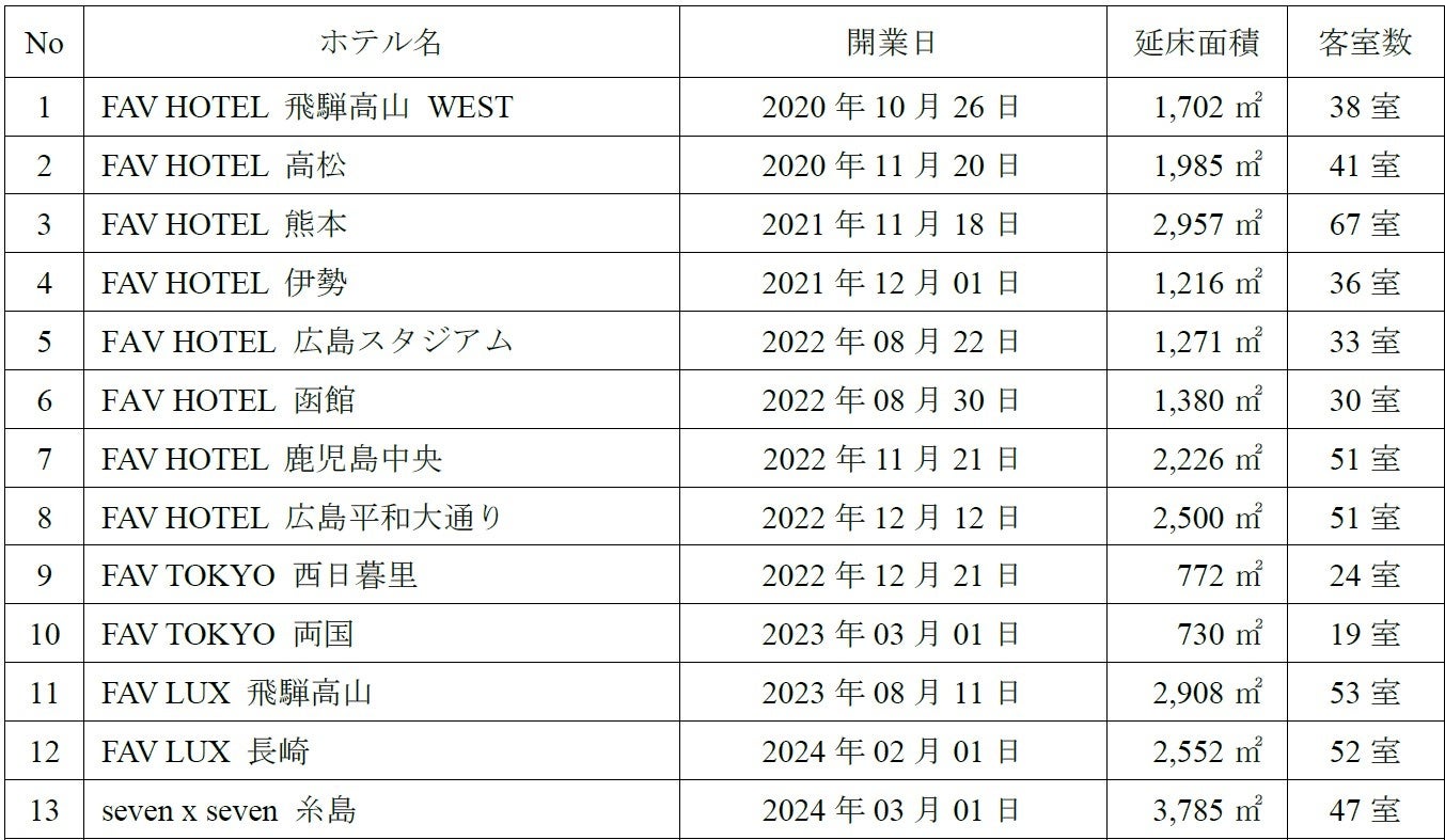 当社は、観光立国の実現や地域創生への貢献を目的にホテルの開発に取り組んでおり、『FAV HOTEL』シリーズのブランド(『FAV HOTEL』『FAV LUX』『seven x seven』)を全国で展開しております。このたび、ホテル開発に係わる土地・建物を新たに取得いたしました。