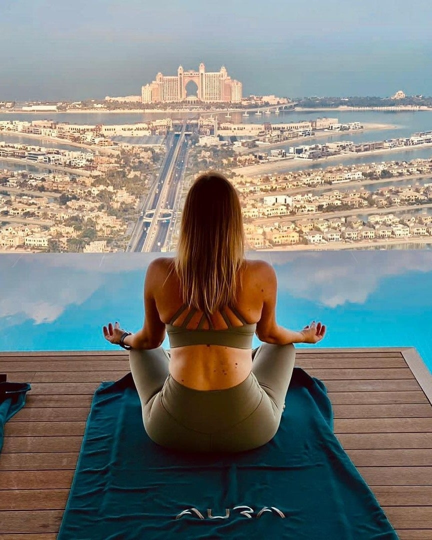 世界初の360度インフィニティプールで話題の「オーラ・スカイプール」で、人工島パームジュメイラビューの絶景を眺めながらヨガが楽しめるレッスンが開催中です。プールがオープンする前の午前8時から行われるヨガレッスン(60分)では、目の前に広がる青空とパームジュメイラビューをひとり占めすることができます!レッスン後には、ヘルシーな朝食も付いてくるお得なプランです。ドバイを訪れたら見てみたい絶景を一望しながらリフレッシュもできる、贅沢な朝を過ごしたい方にピッタリです。