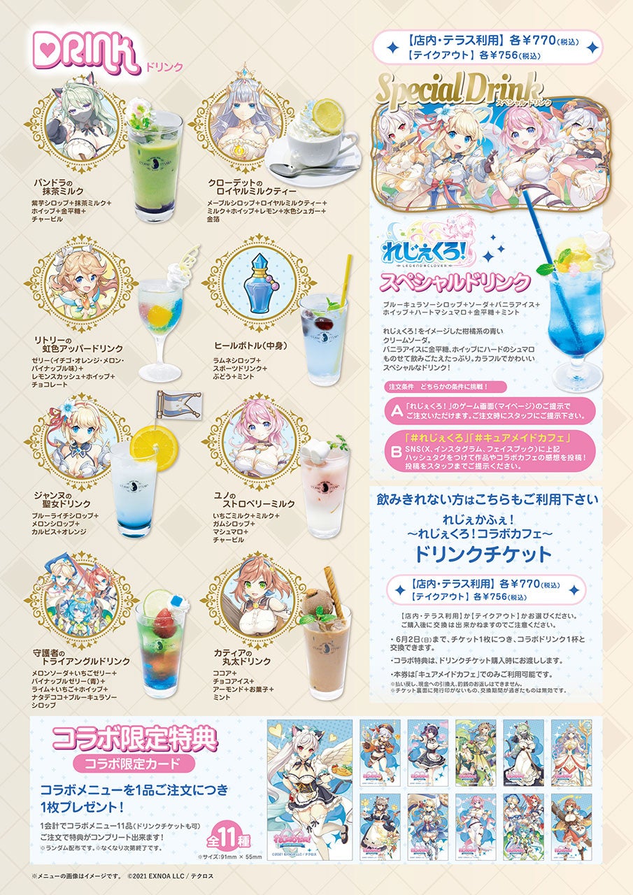 「れじぇくろ!」ゲーム画面(マイページ)のご提示または、SNSにハッシュタグを付けて作品やコラボカフェについて投稿すると注文可能な「れじぇくろ!スペシャルドリンク」もご用意しました。