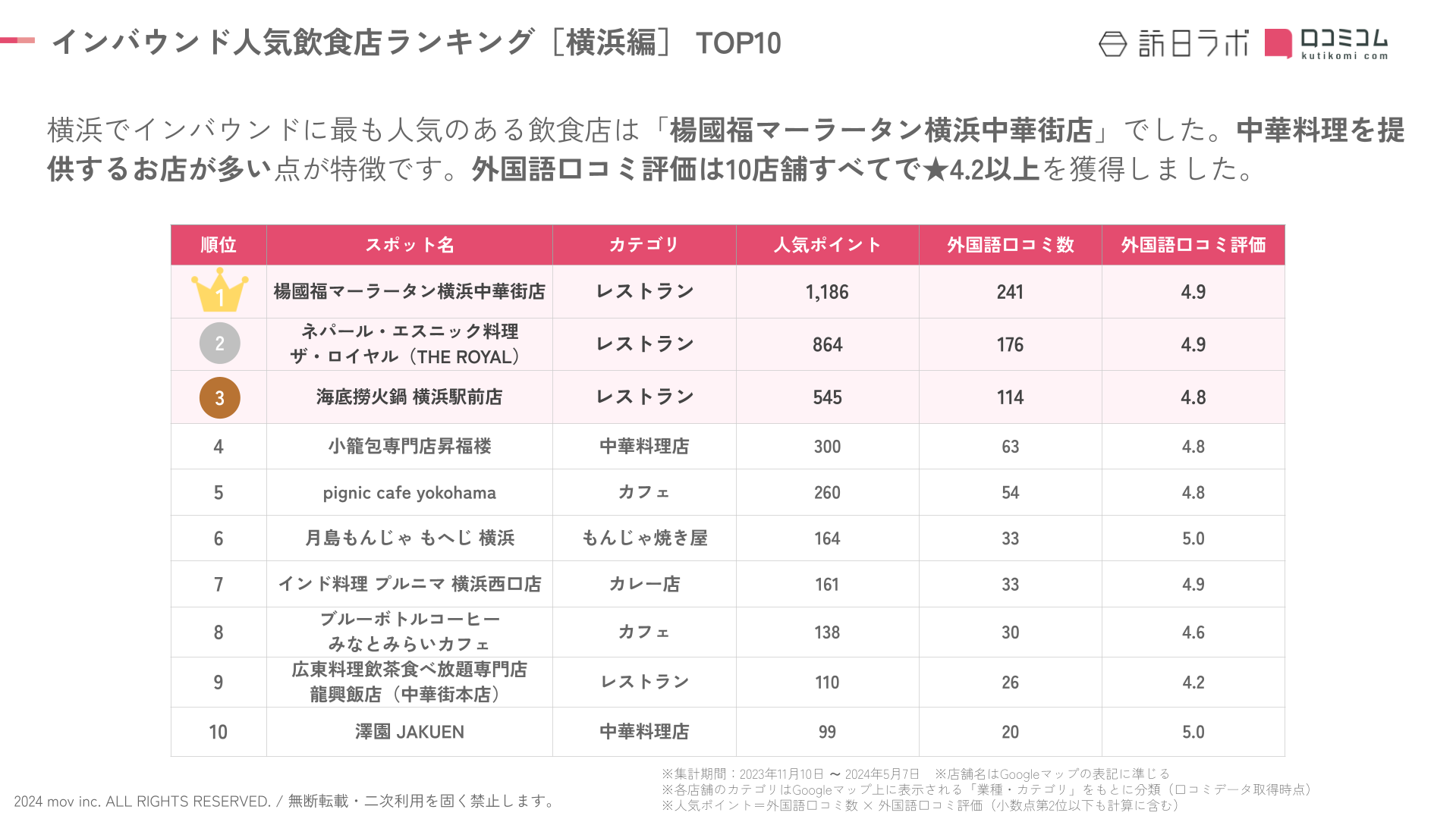 <インバウンド人気飲食店ランキング TOP10[横浜編]>
