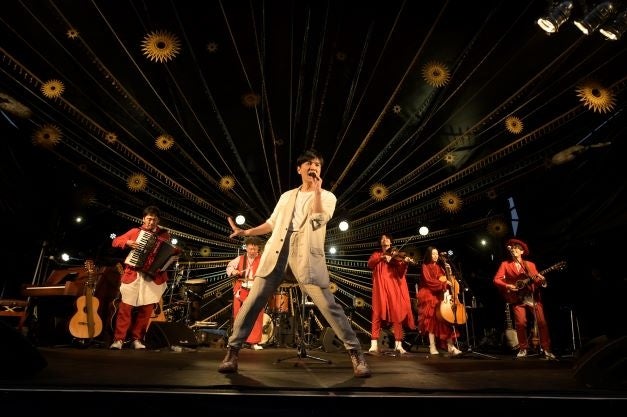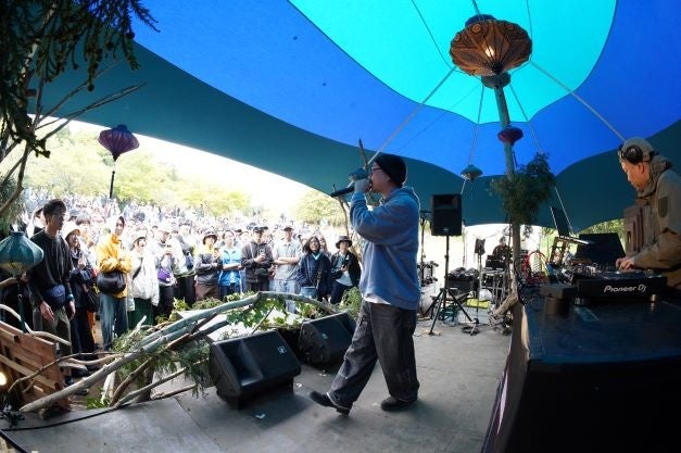 一足早く夏のお祭りシーズンが来たような熱気で観客を盛り上げたのは、SUNステージのトップバッター「民謡クルセイダーズ」。日本人には馴染みのある民謡のメロディにトランペット、サックス、ボンゴなど、インターナショナルな音色が加わる。やはりこの融合こそ民クルの真骨頂。終盤のパフォーマンスの盛り上がりと共に曇り空に晴れ間が差し込んだのも、非常に印象的だった。聴衆を陽気に踊らせ、会場を「祭り」に一変させるにぎやかなステージで、観客とステージが一体となって楽しむ光景がみられた。
