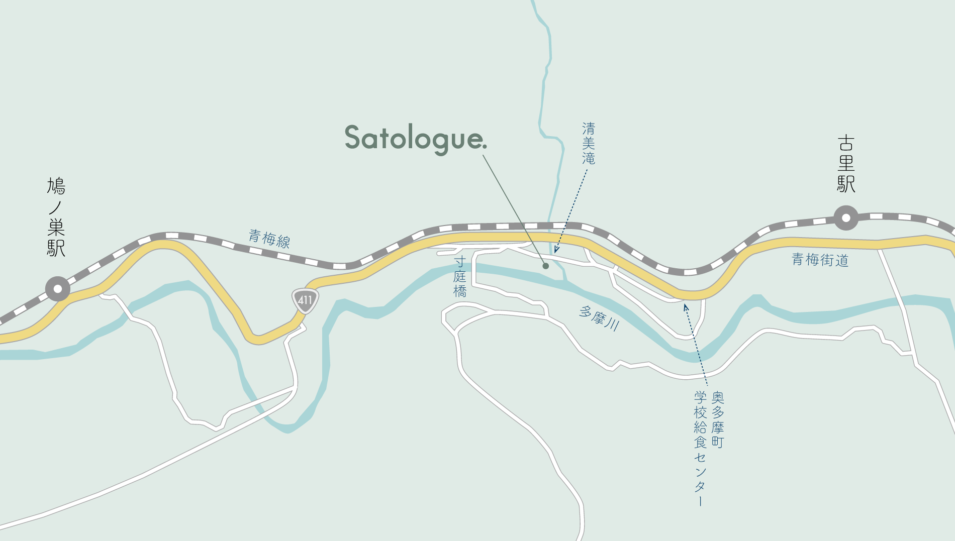 「Satologue」はJR青梅線 鳩ノ巣駅・古里駅の間に位置しており、地域の歴史・文化・自然や、そこに住まう人々の営みといった「里の物語」を、空間やサービス、アクティビティの中で感じていただき、この地域がお客様にとって「ふるさと」のような存在になって欲しいという想いを込め、このたび開業します。